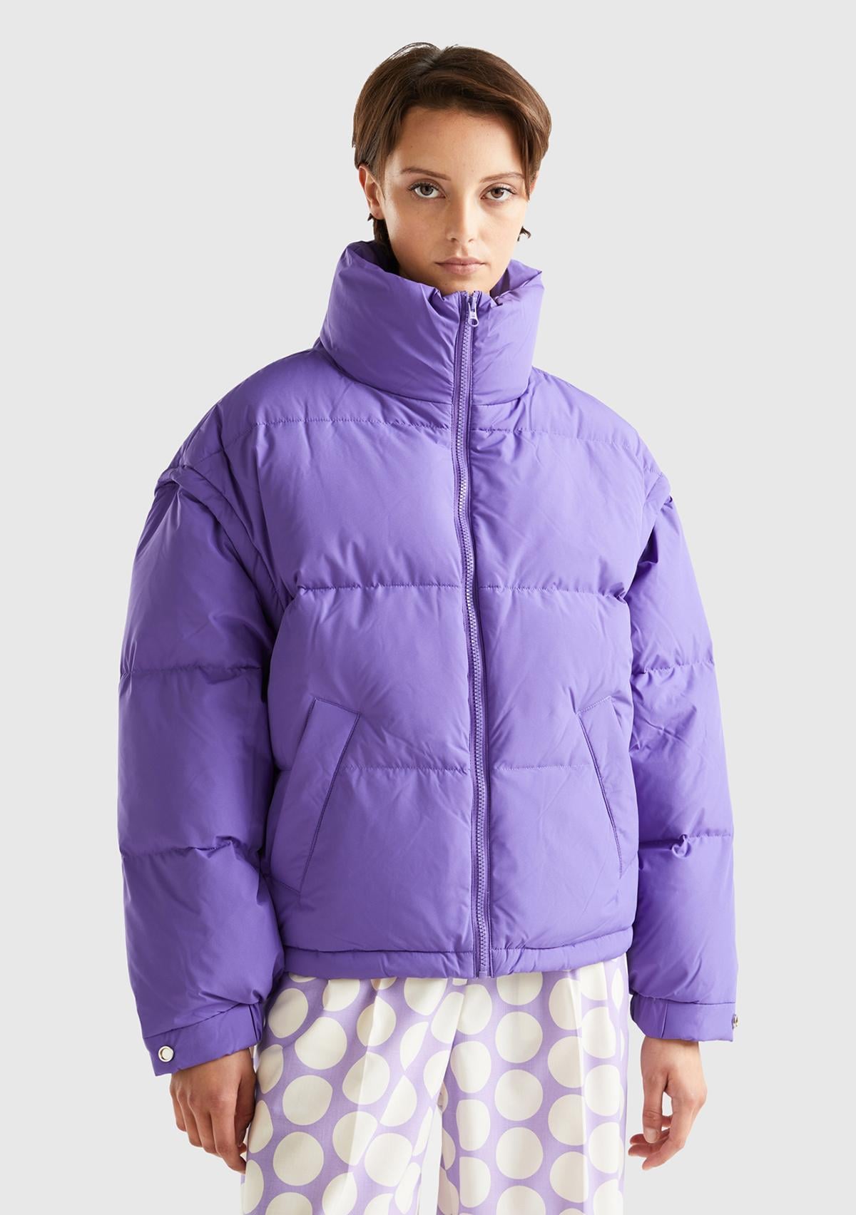 Kadın Mor Kaz Tüyü Dolgulu Pufa Mont. Kaz Tüyü İçerir