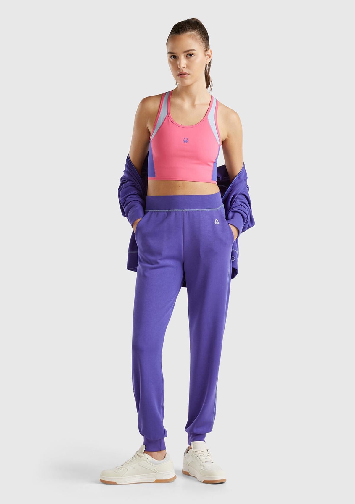 Kadın Mor Modal Karışımlı Önü Logo Detaylı Bilek Manşetli Eşofman Altı