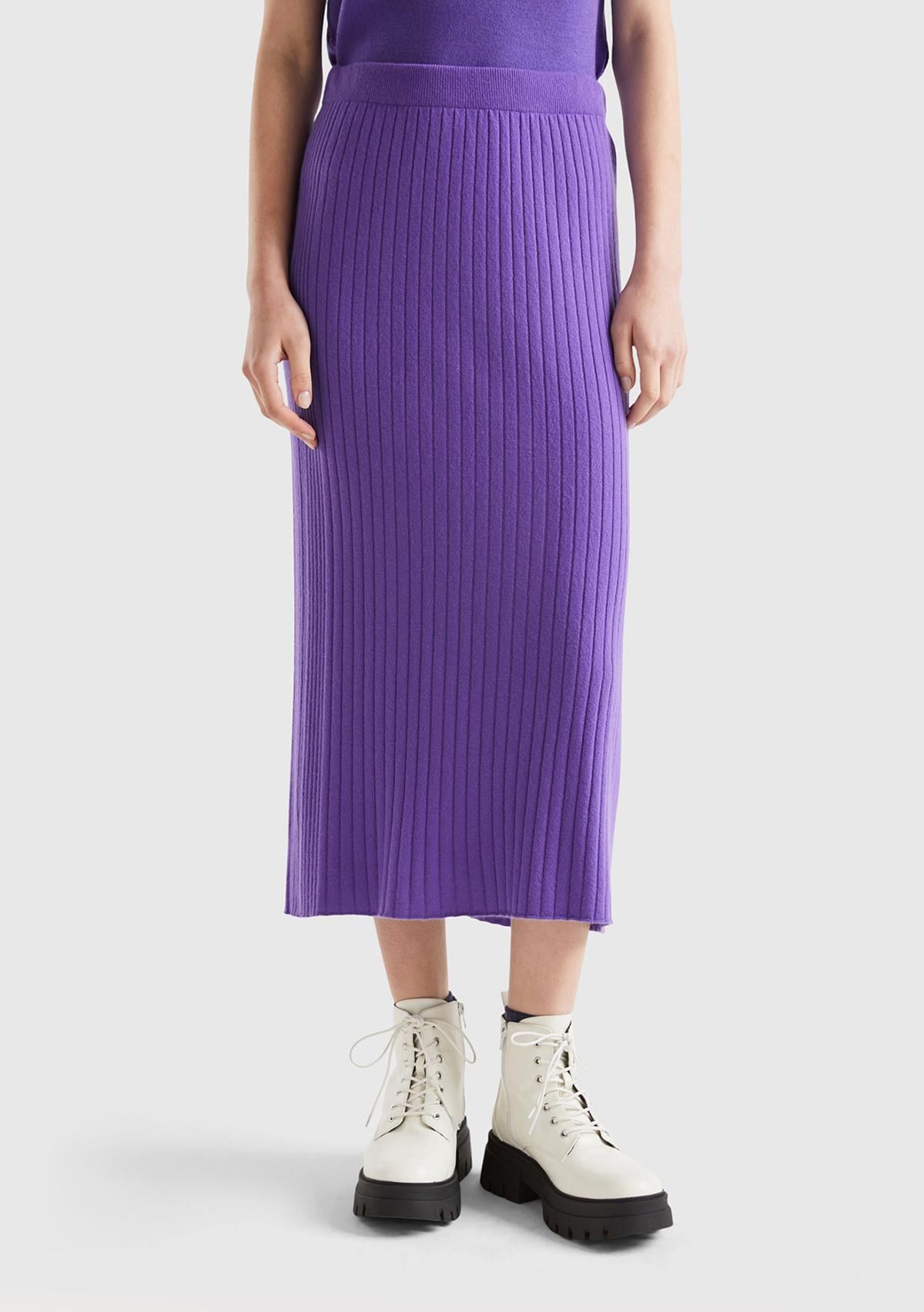 Kadın Mor Yün Karışımlı Uzun Etek