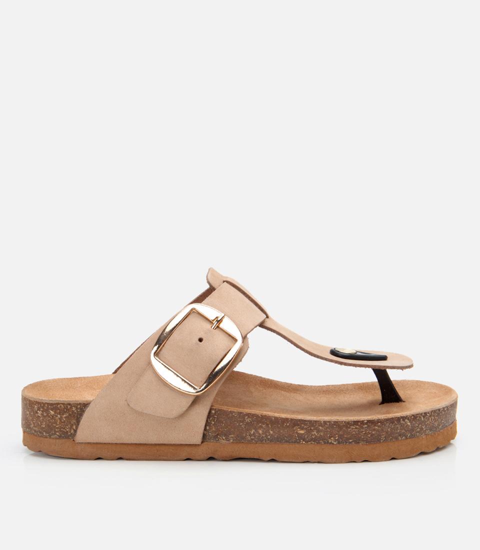 Kadın Nubuk Deri Bej Kemerli Parmak Arası Terlik