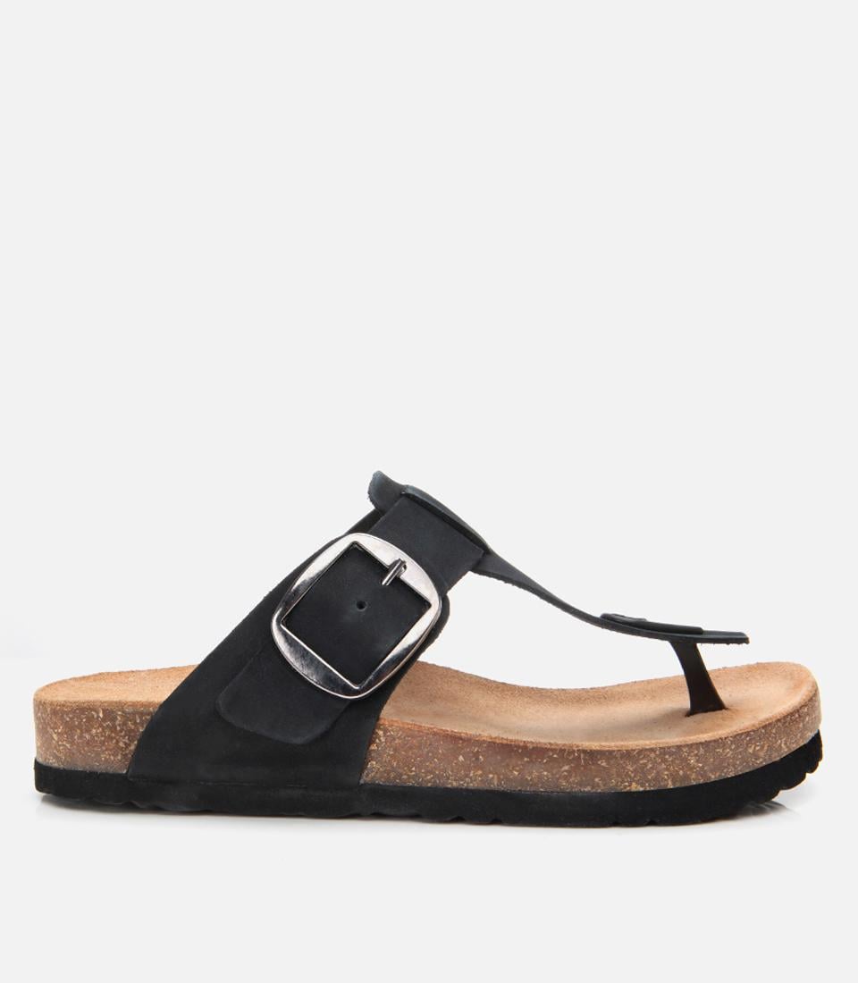 Kadın Nubuk Deri Siyah Kemerli Parmak Arası Terlik