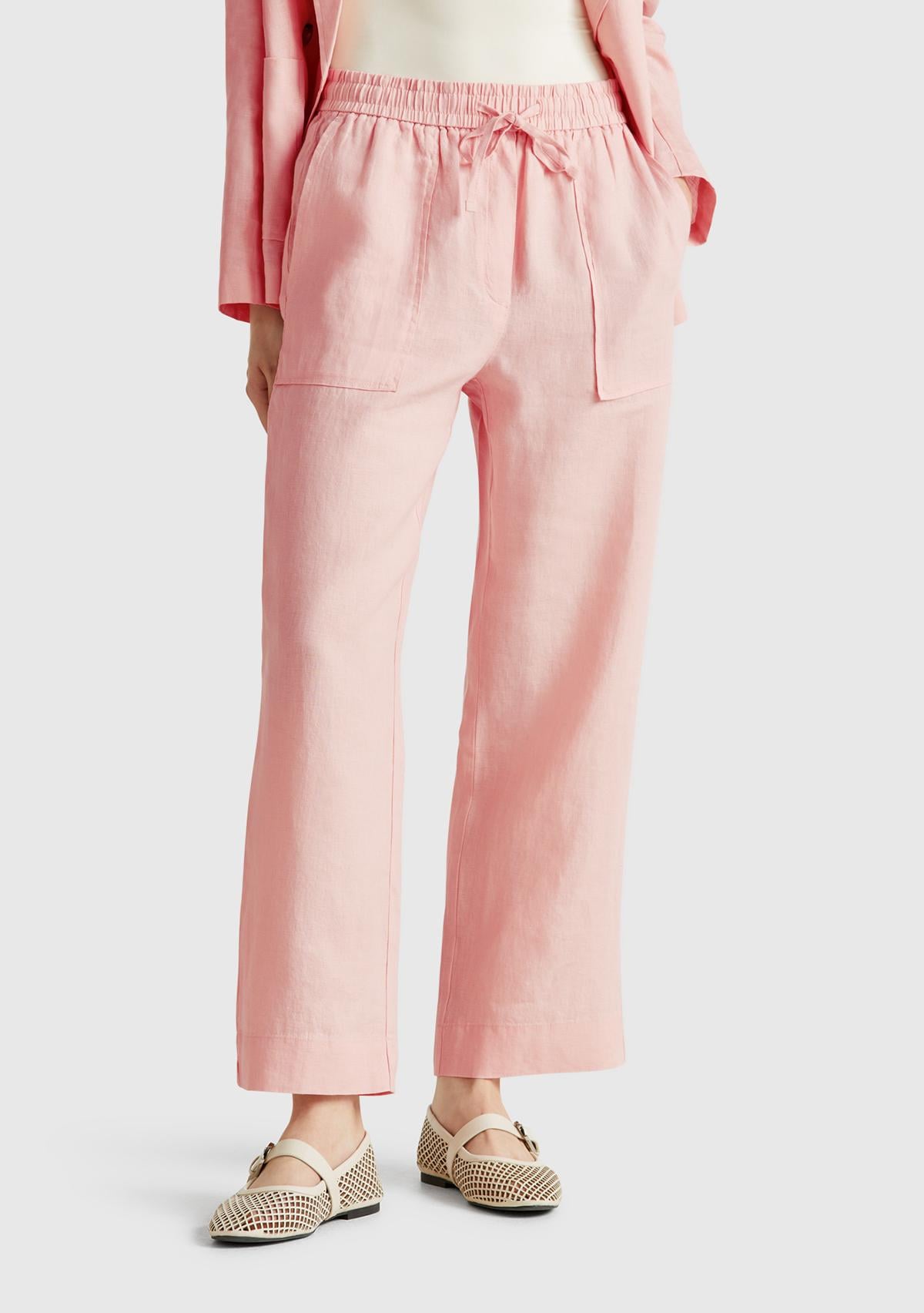 Kadın Pembe %100 Keten Büzgü İpli Cepli Pantolon
