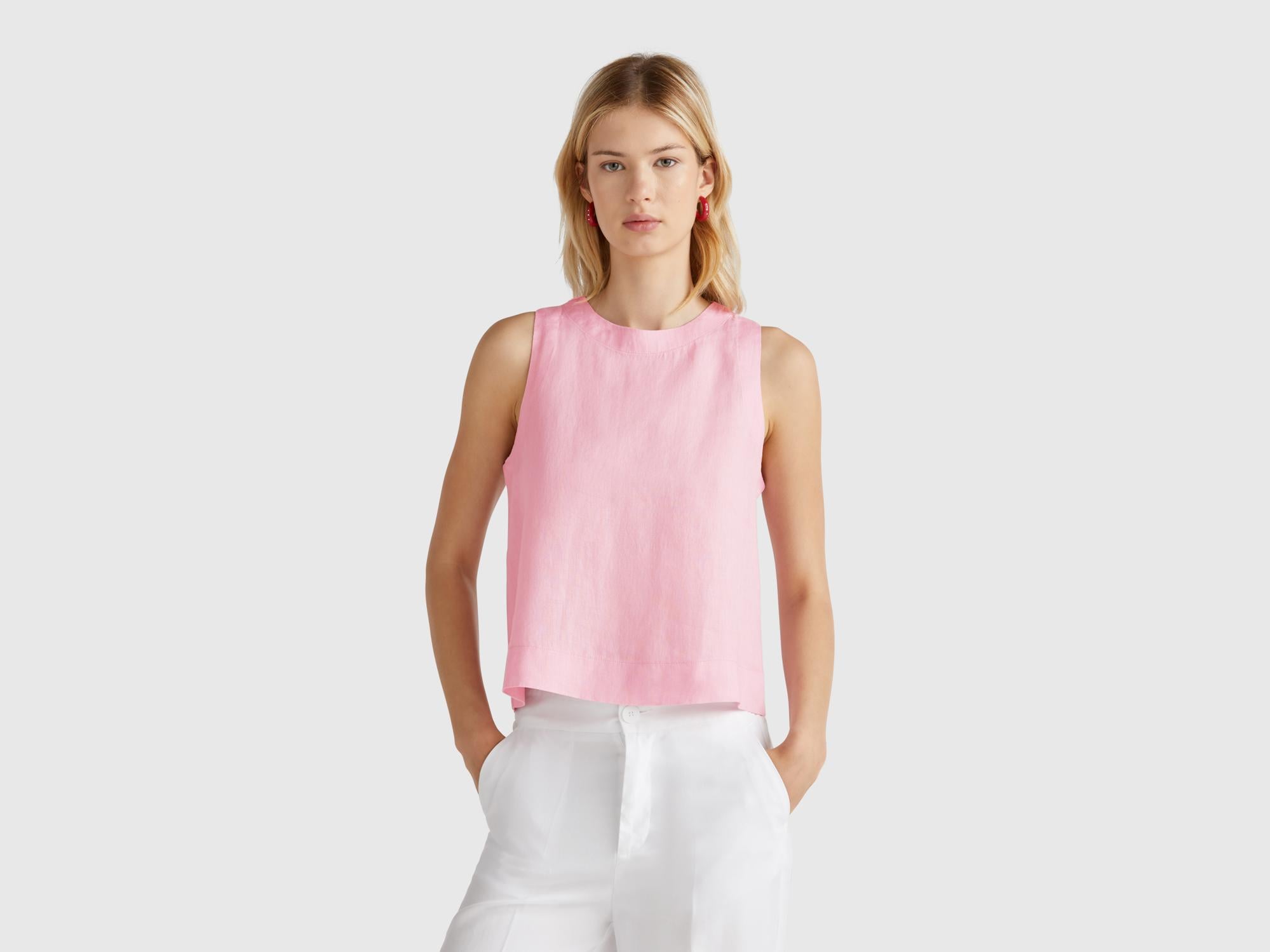 Kadın Pembe %100 Keten Kolsuz Bluz