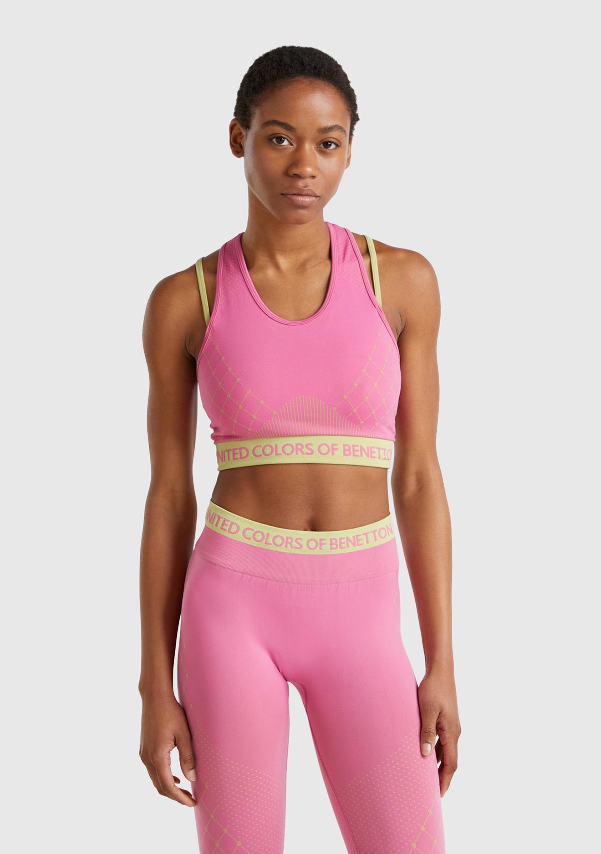 Kadın Pembe Desenli Beli Logo Bantlı Askı Detaylı Crop Atlet