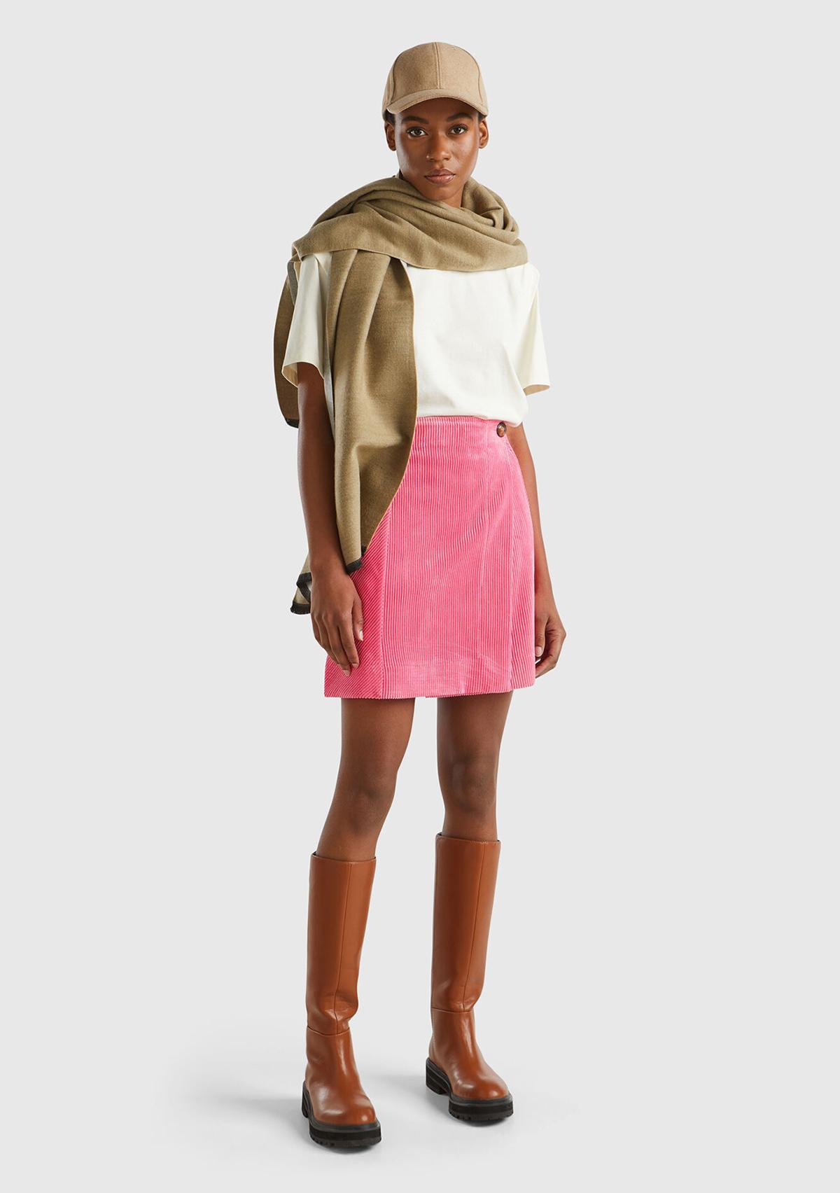 Kadın Pembe Düğme Detaylı Kadife Anvelop Mini Etek