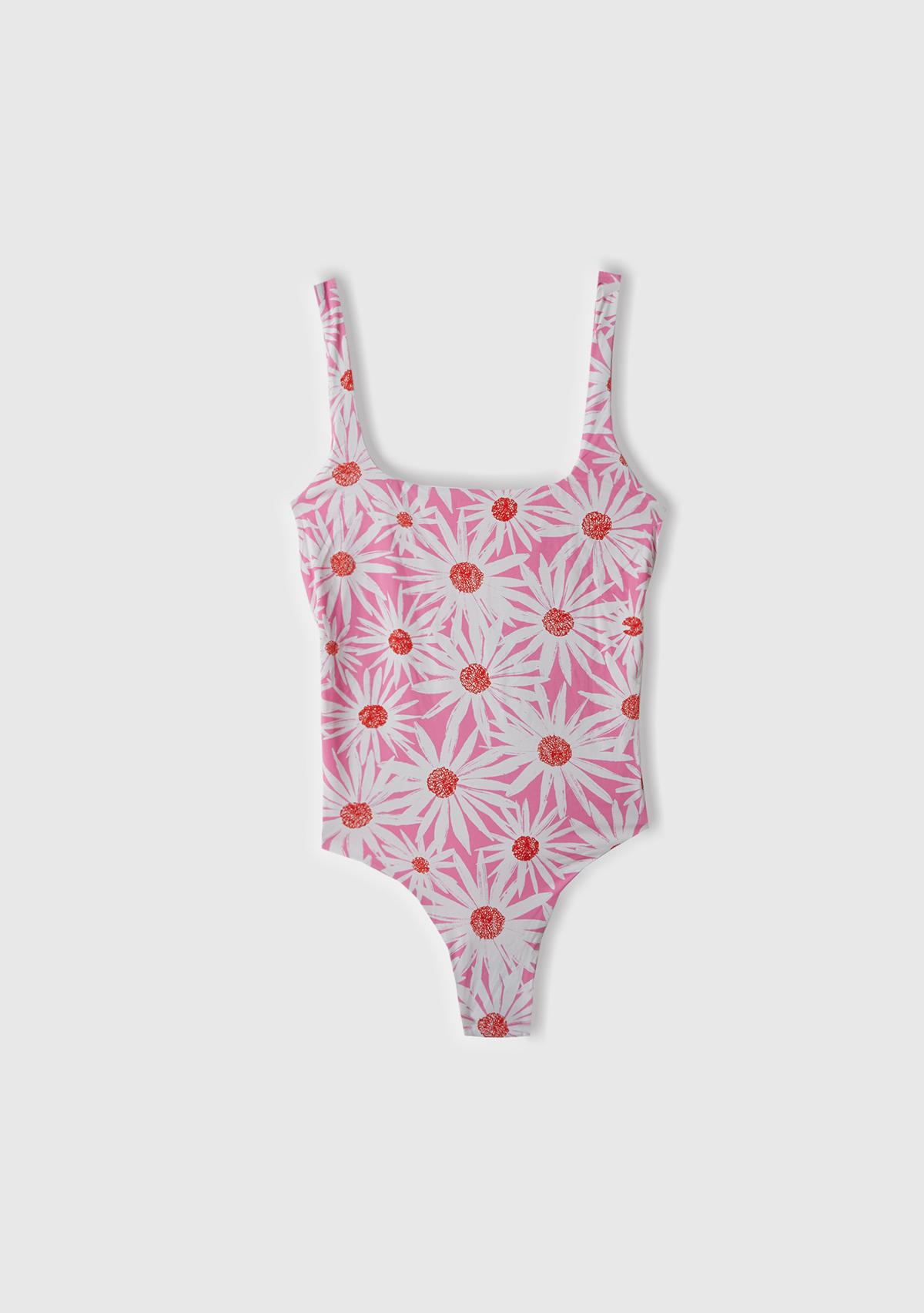 Kadın Pembe Mix Tamamı Desenli Derin Sırt Dekolteli Brezilya Model Mayo