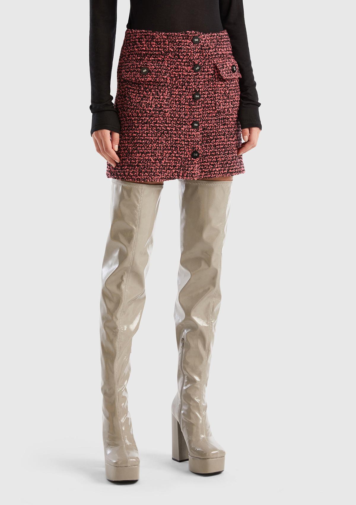 Kadın Pembe Mix Yün Karışımlı Tüvit Mini Etek