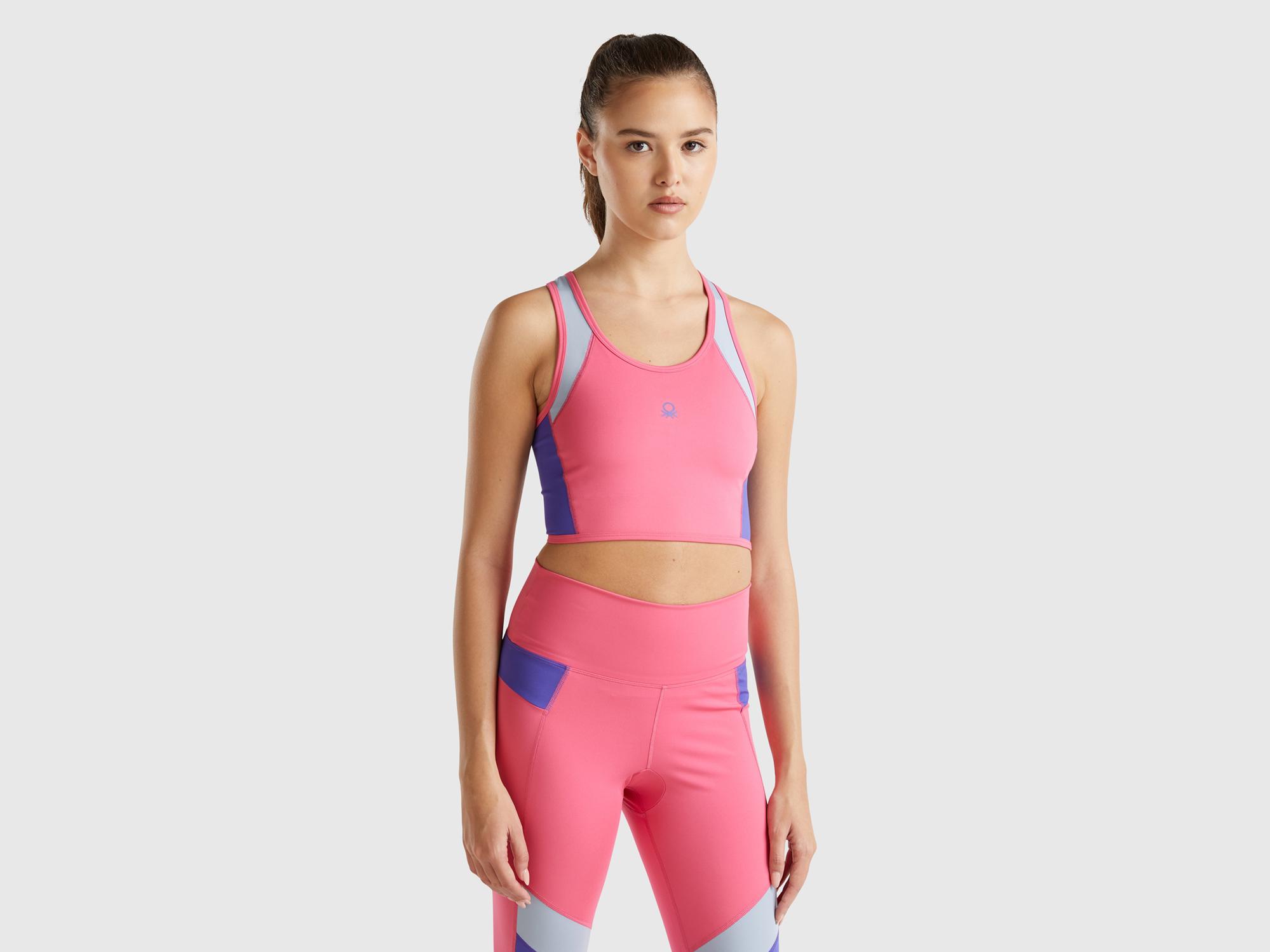 Kadın Pembe Önü Logo Baskılı Kontrast Renk Detaylı Crop Atlet