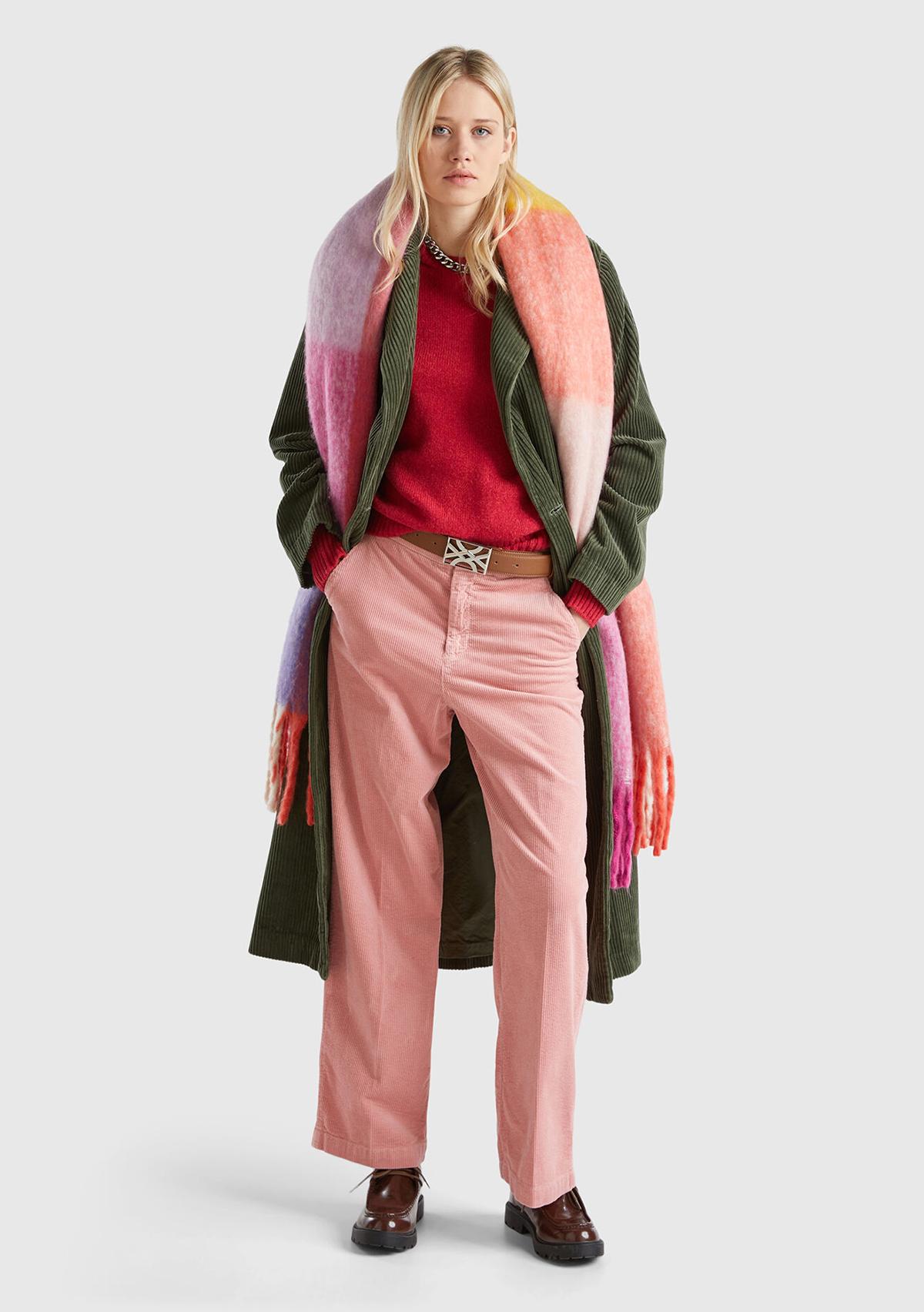 Kadın Pembe Pamuk Karışımlı Arkası Lastikli Cepli Geniş Paça Kadife Pantolon