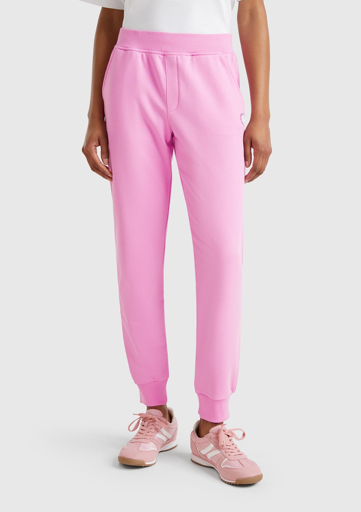 Kadın Pembe Pamuk Karışımlı Logo Baskılı Beli Lastikli Jogger Eşofman Altı