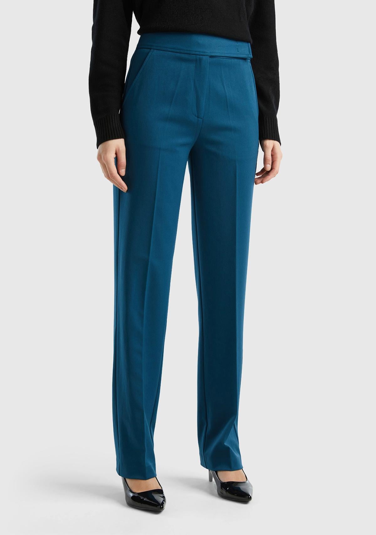 Kadın Petrol Mavisi Viskoz Karışımlı Beli Kalın Bantlı Cepli Pantolon