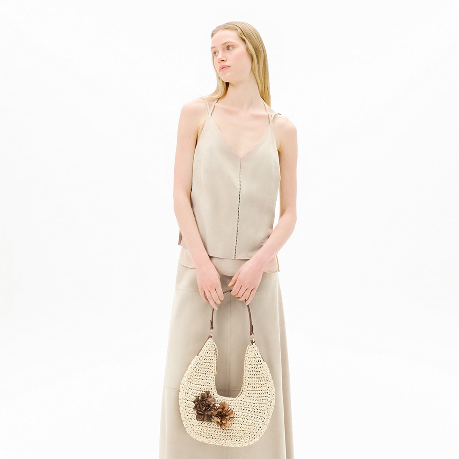 Ürüne ince askı detayları ile hareketlilik katılmıştır.