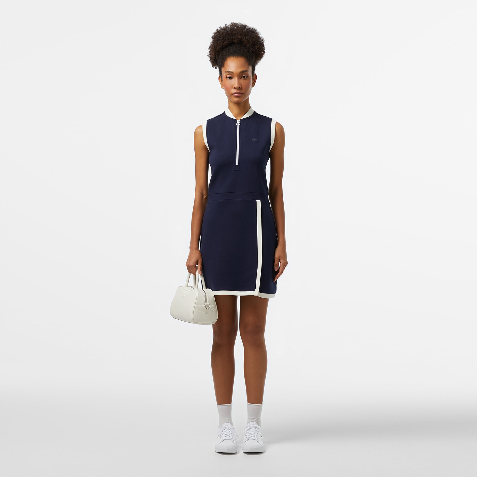 Sportif ve zarif bir tasarıma sahip olan Lacoste elbise, kolsuz yapısı ve fermuarlı yaka detayıyla dikkat çekiyor. Yumuşak dokusu ve bel kısmındaki modern hatlar, konfor ve şıklığı bir araya getiriyor. Şerit detayları ve tona ton timsah logosu, tasarıma zarif bir dokunuş katıyor.