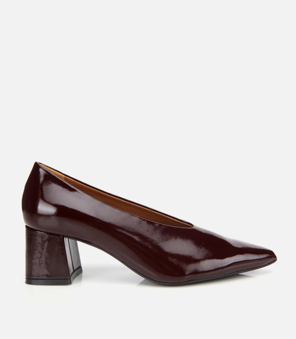 Kadın Rugan Deri Bordo Yumuşak Dokulu Kalın Topuklu Ayakkabı