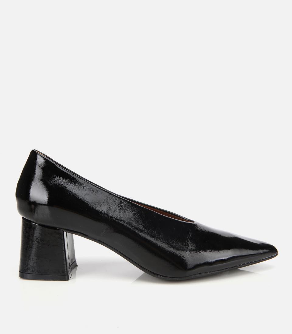 Kadın Rugan Deri Siyah Yumuşak Dokulu Kalın Topuklu Ayakkabı