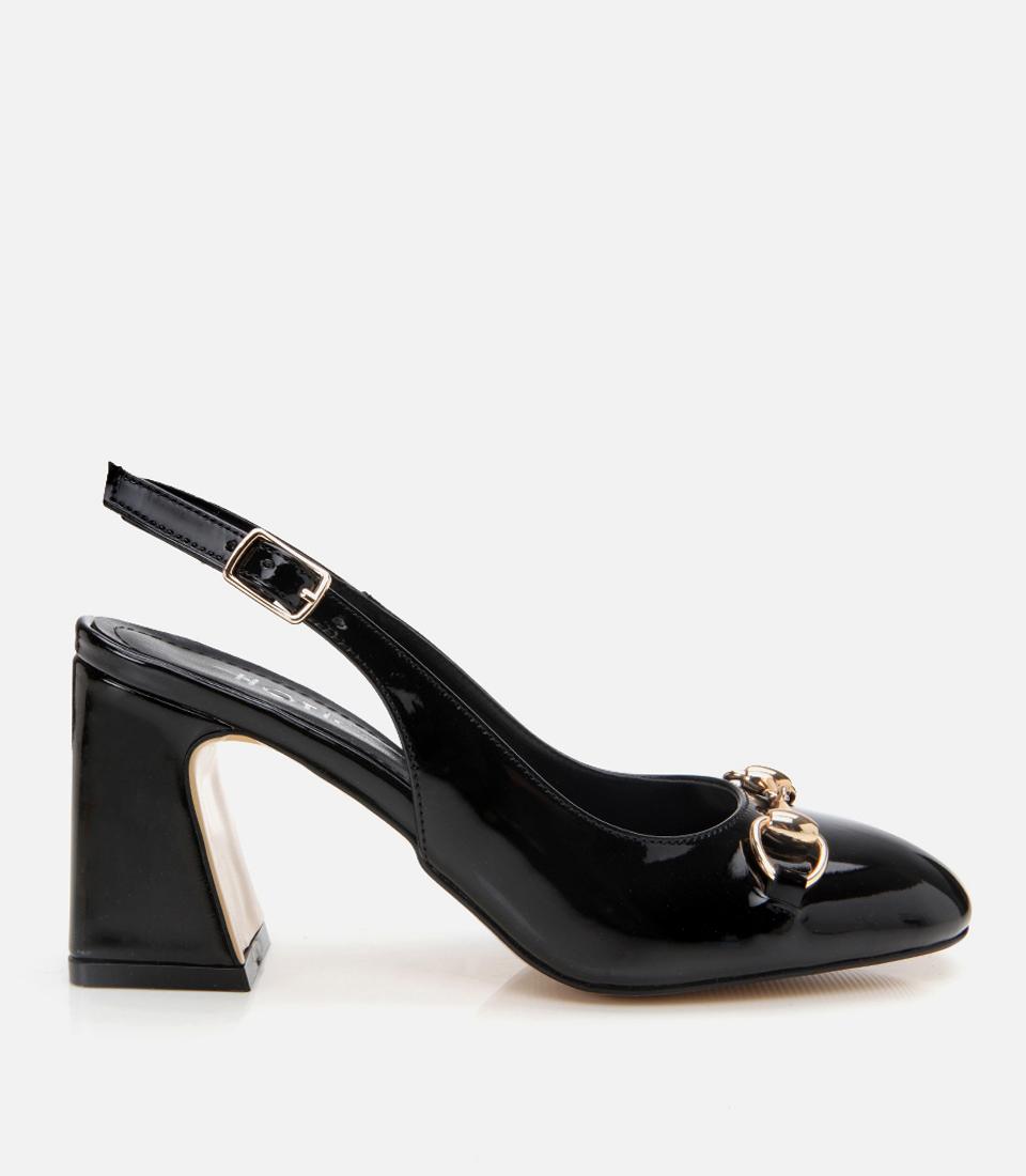 Kadın Rugan Siyah Arkası Açık Kalın Topuklu Ayakkabı