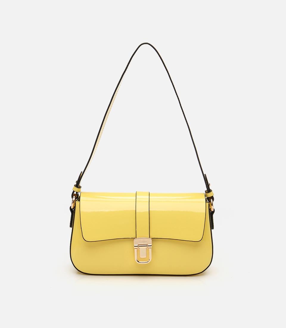 Kadın Sarı Kilit Detaylı Çapraz Askılı Çanta