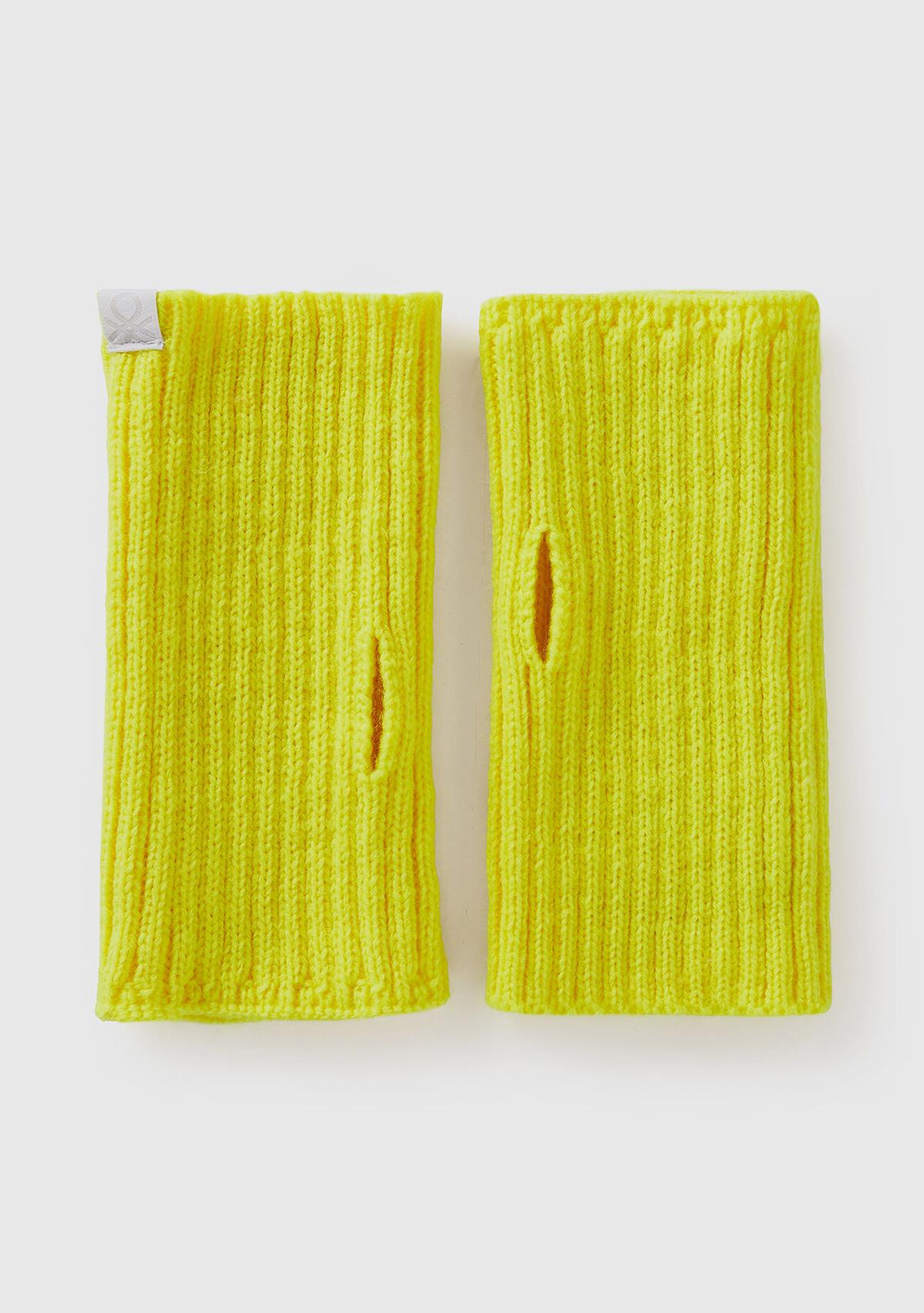 Kadın Sarı Yün Karışımlı Parmaksız Eldiven. Koyun Yünü İçerir