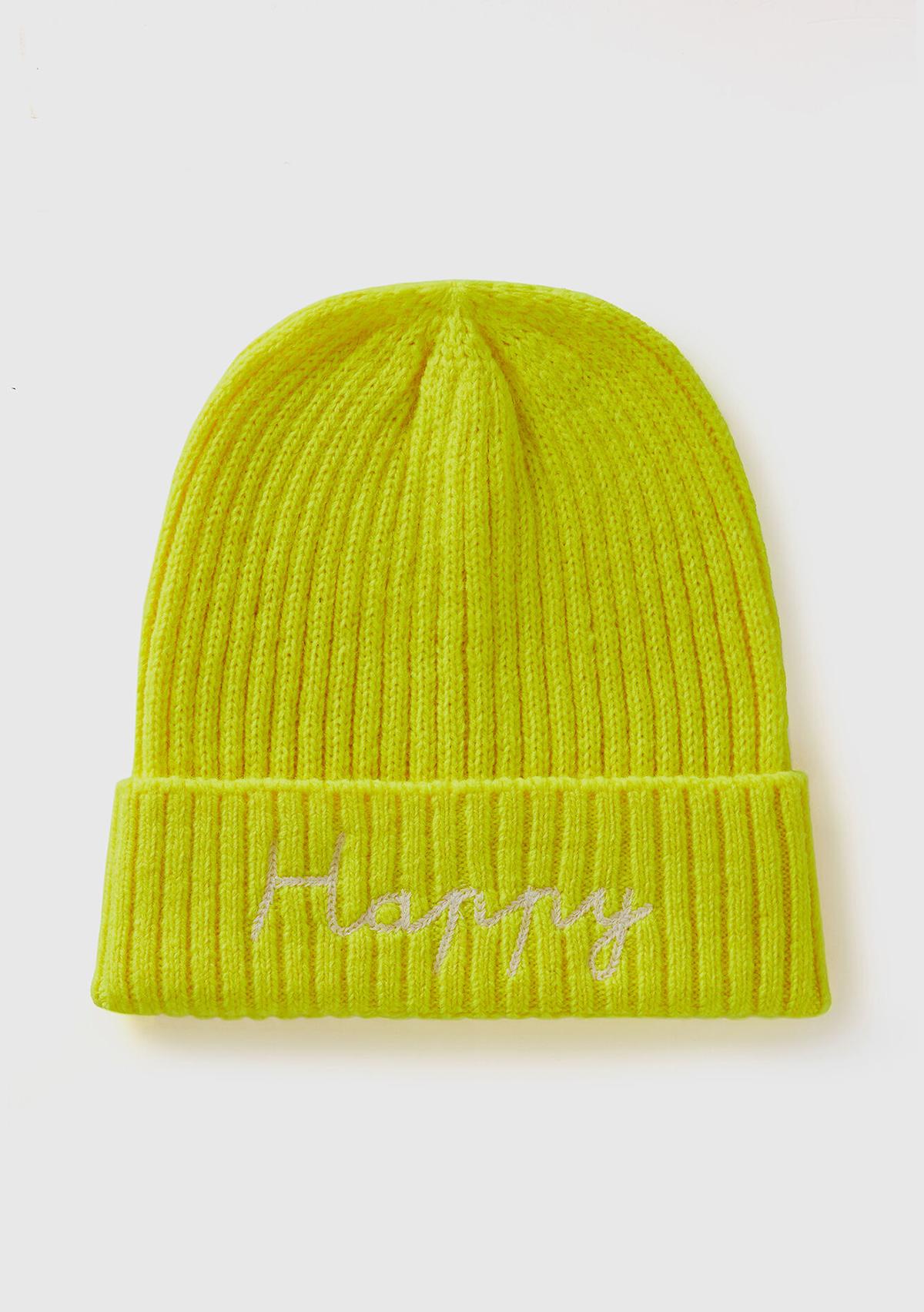 Kadın Sarı Yün Karışımlı Slogan İşlemeli Bere. Koyun Yünü İçerir