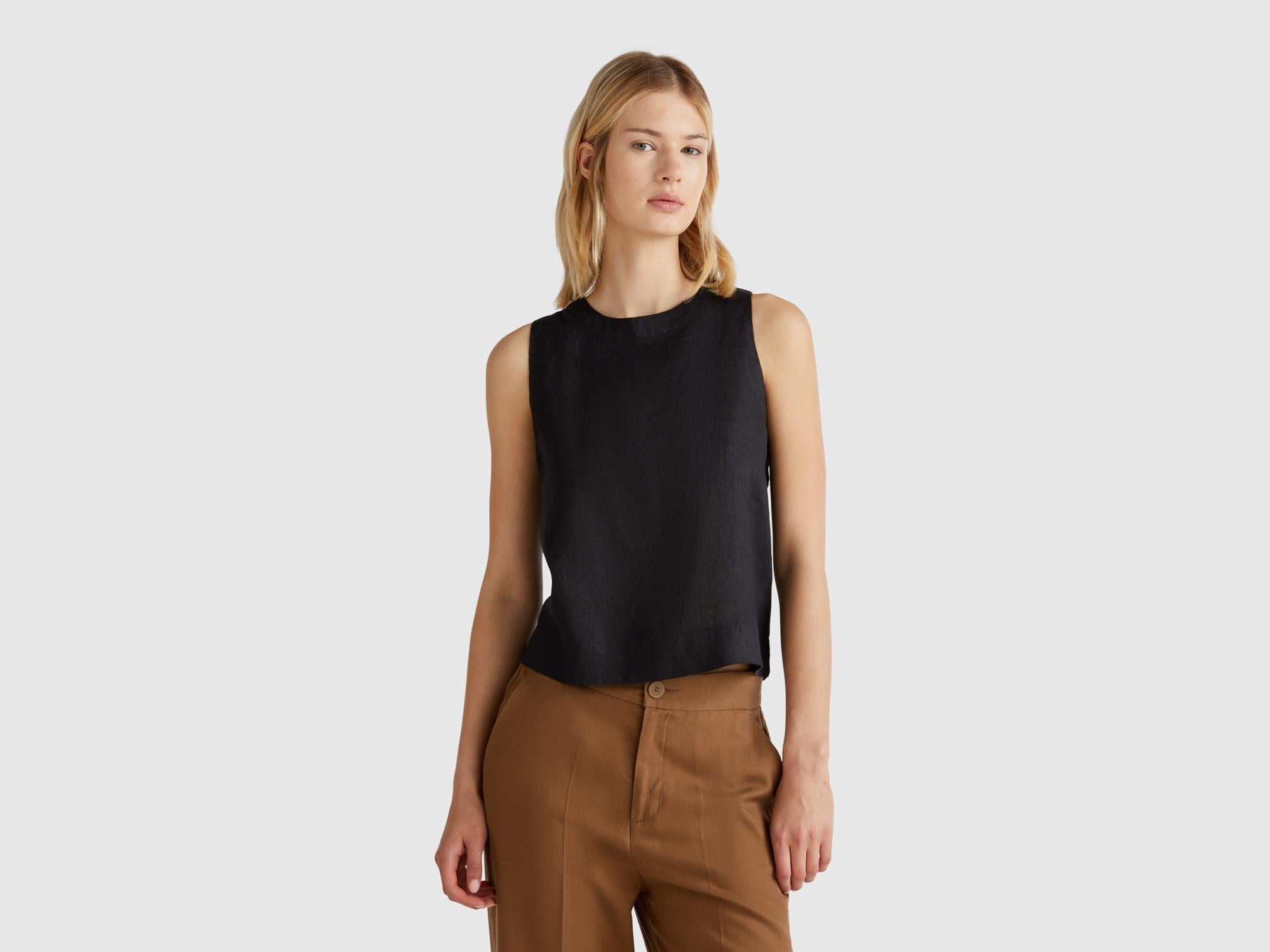 Kadın Siyah %100 Keten Kolsuz Bluz