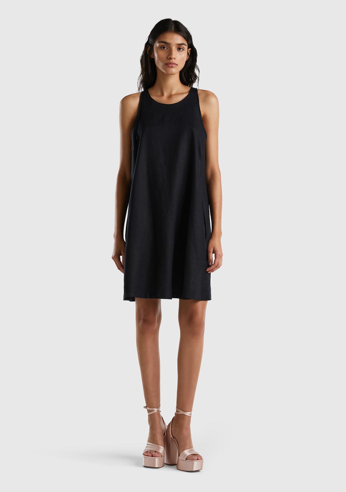 Kadın Siyah %100 Keten Kolsuz Elbise