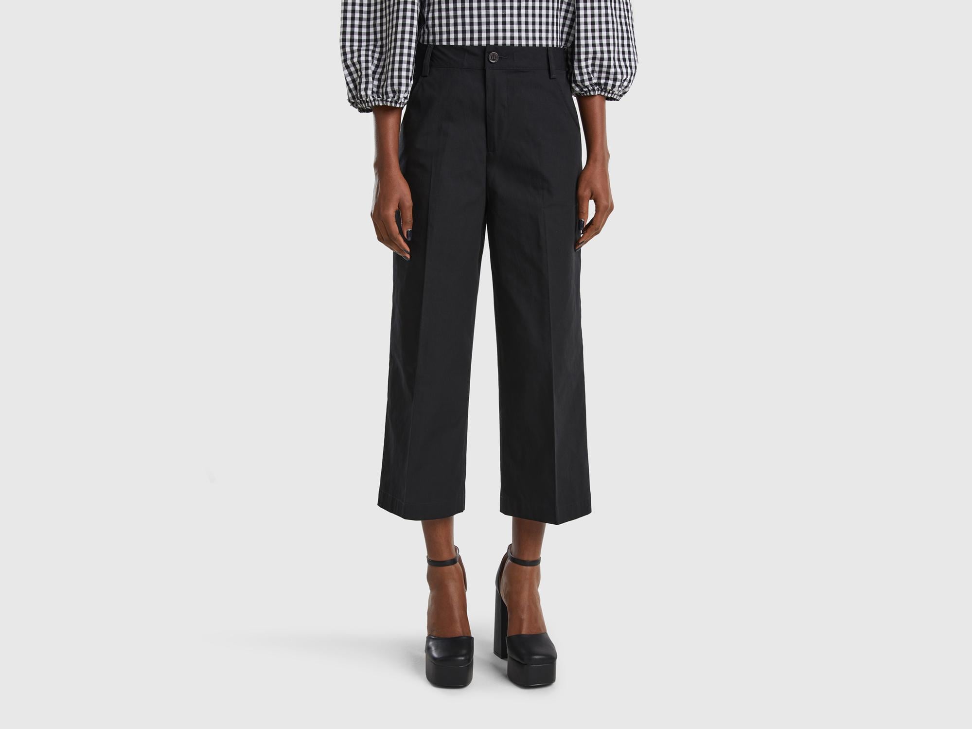 Kadın Siyah %100 Koton Kısa Geniş Paça Pantolon