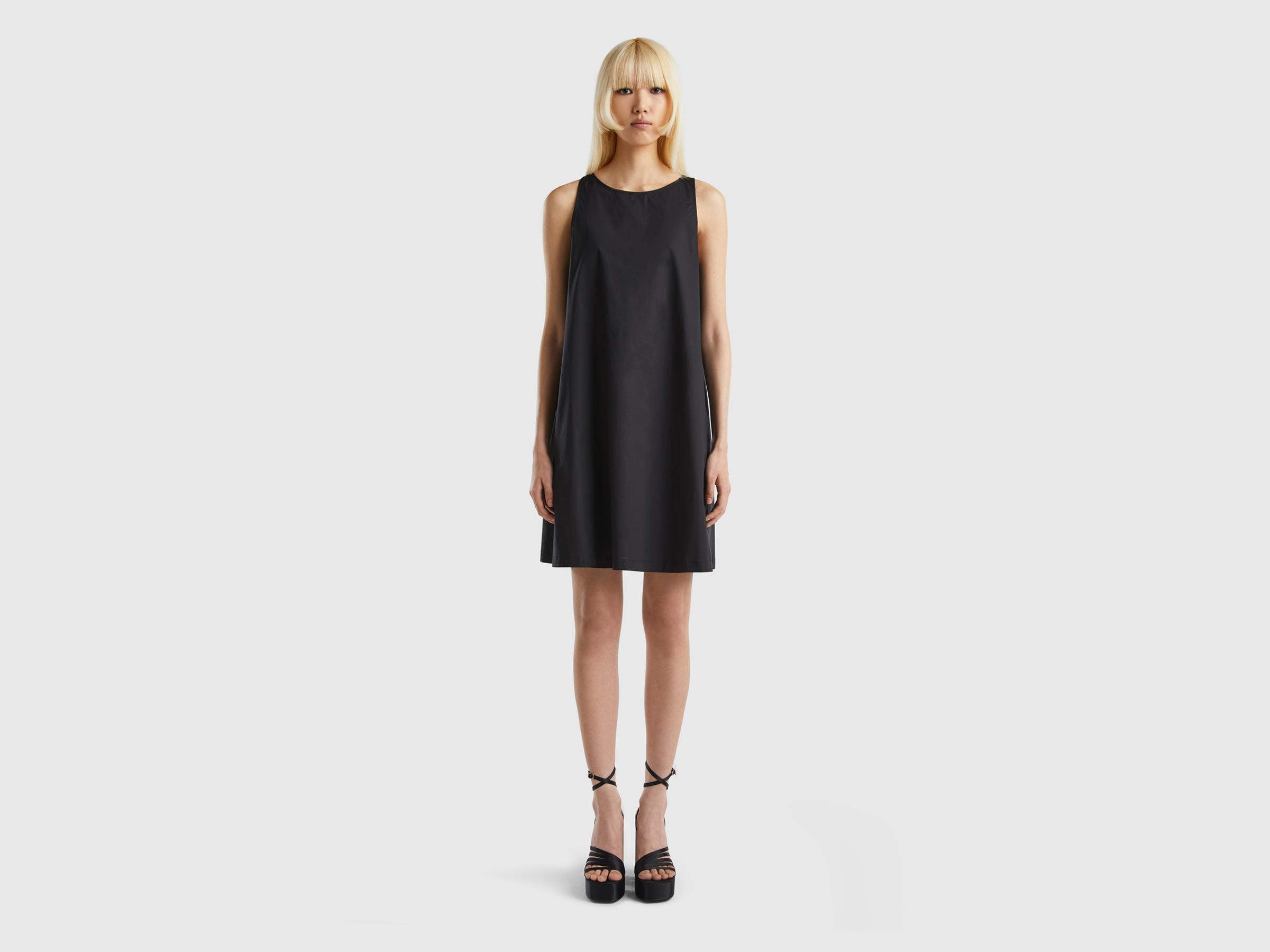 Kadın Siyah %100 Koton Kolsuz Midi Boy Elbise