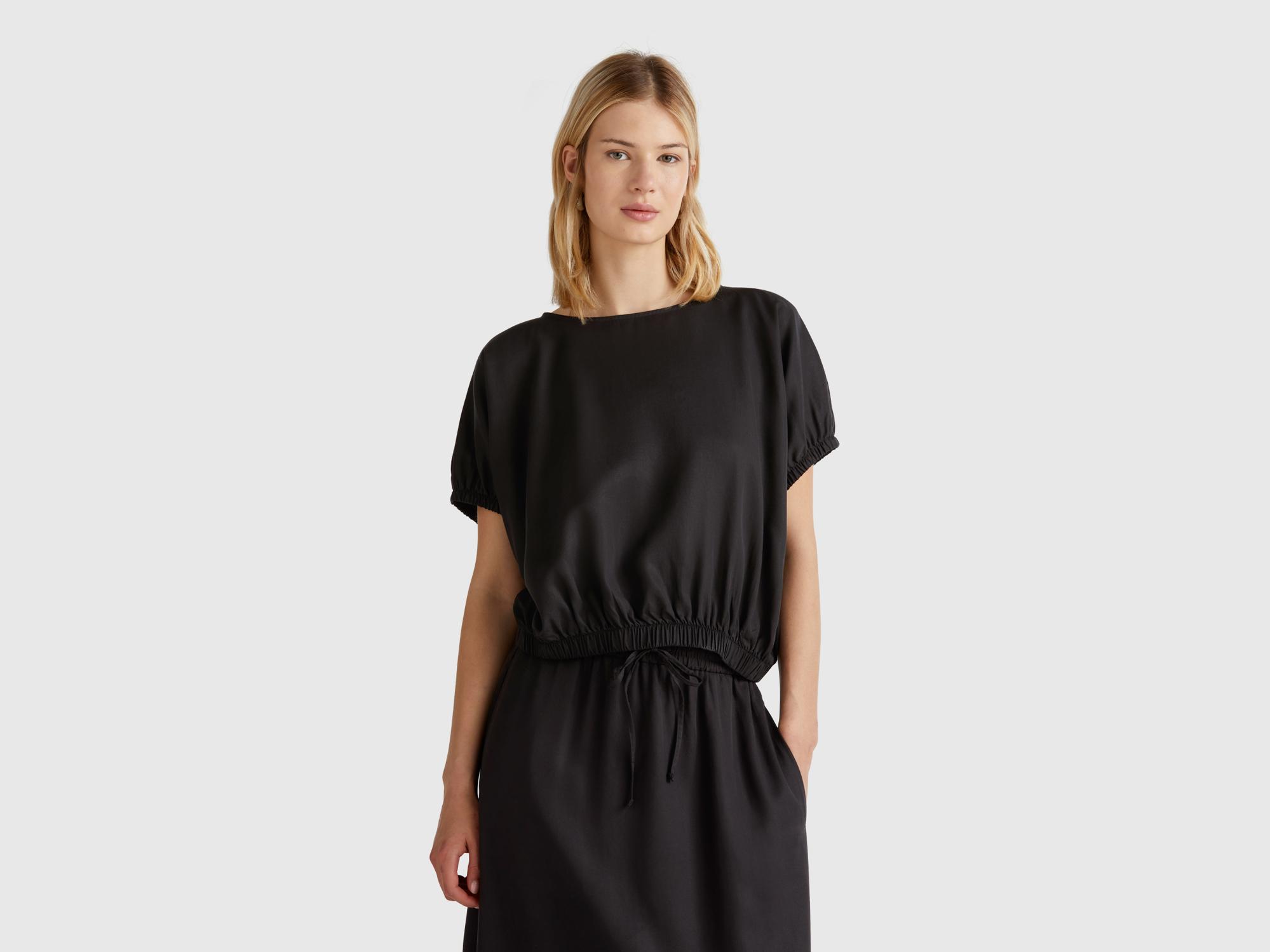 Kadın Siyah %100 Liyosel Beli Lastikli Kimona Kol Bluz