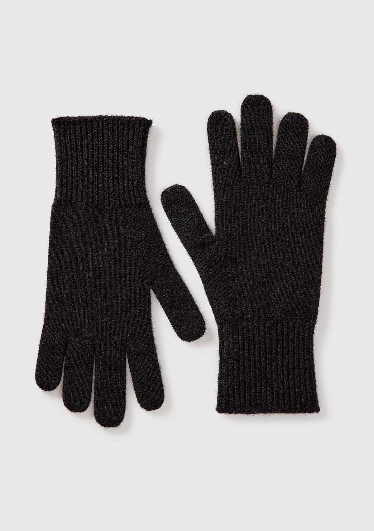 Kadın Siyah %100 Yün Bilek Detaylı Düz Eldiven. Koyun Yünü İçerir