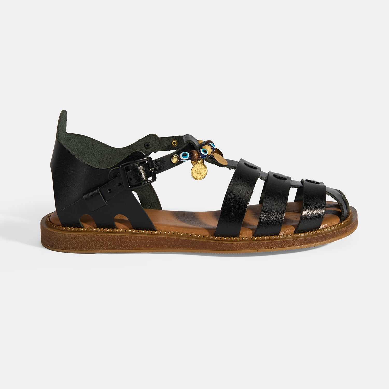 Kadın Siyah Aksesuar Detaylı Ayarlanabilir Tokalı Deri Sandalet