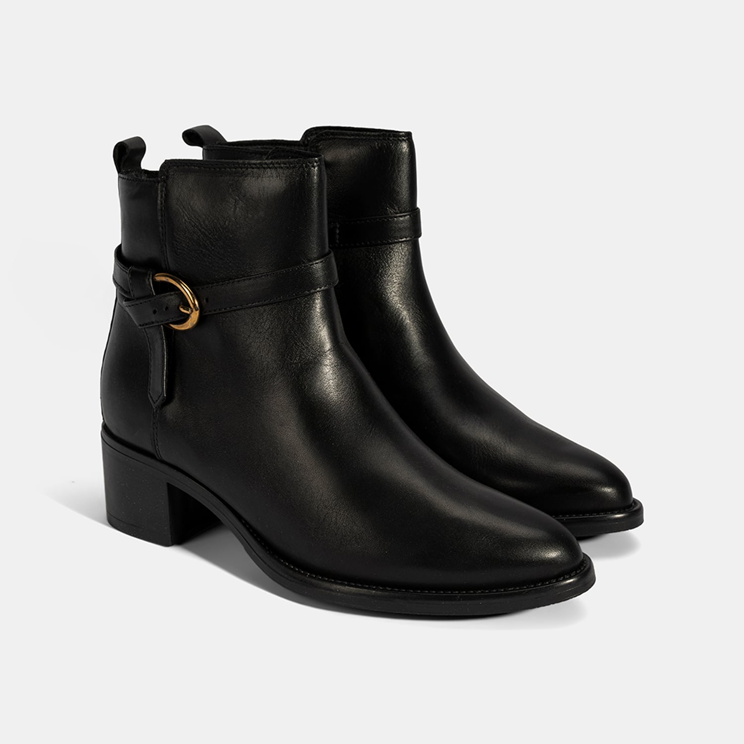 Kadın Siyah Ayarlanabilir Metal Tokalı Topuklu Deri Bot