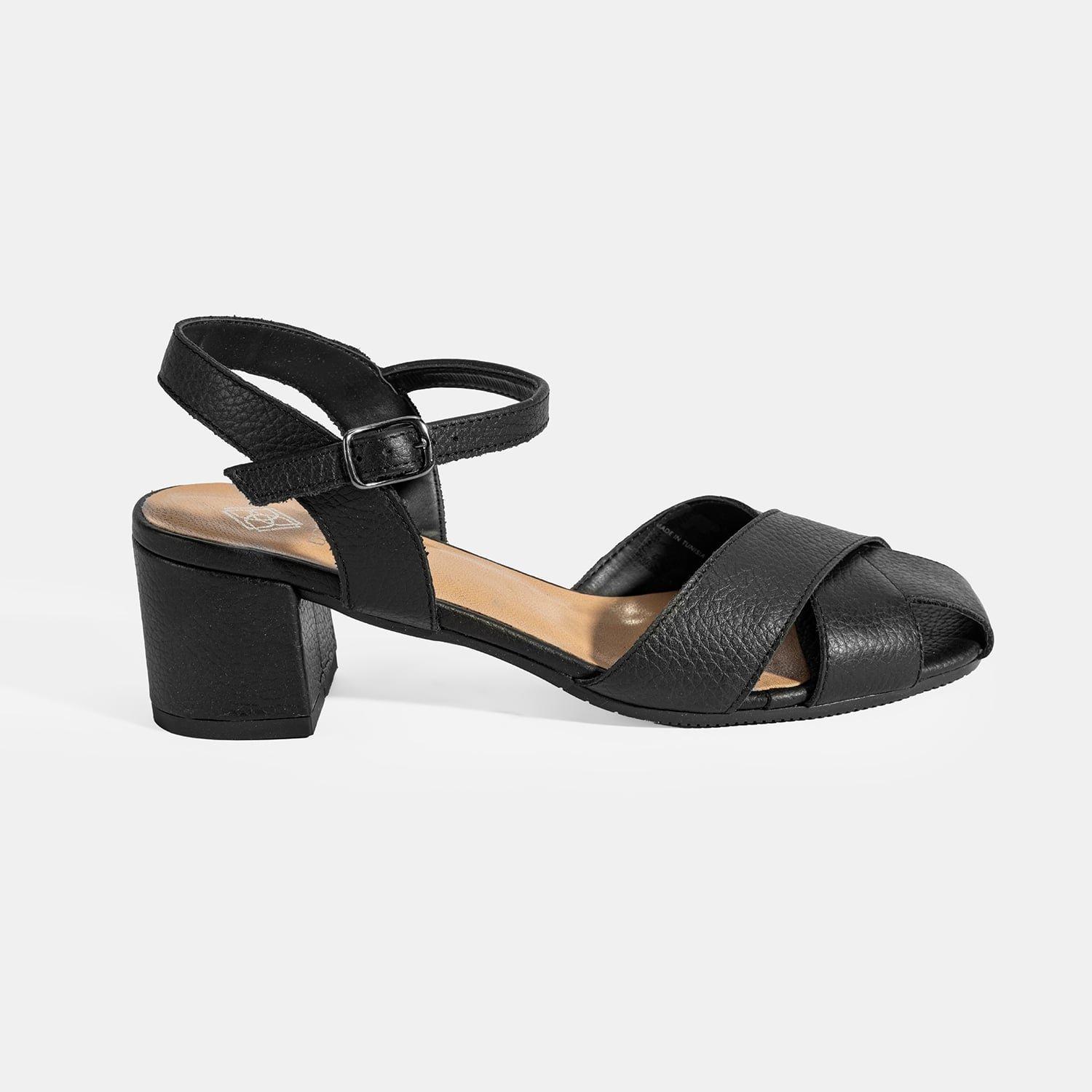 Kadın Siyah Ayarlanabilir Tokalı Deri Topuklu Sandalet