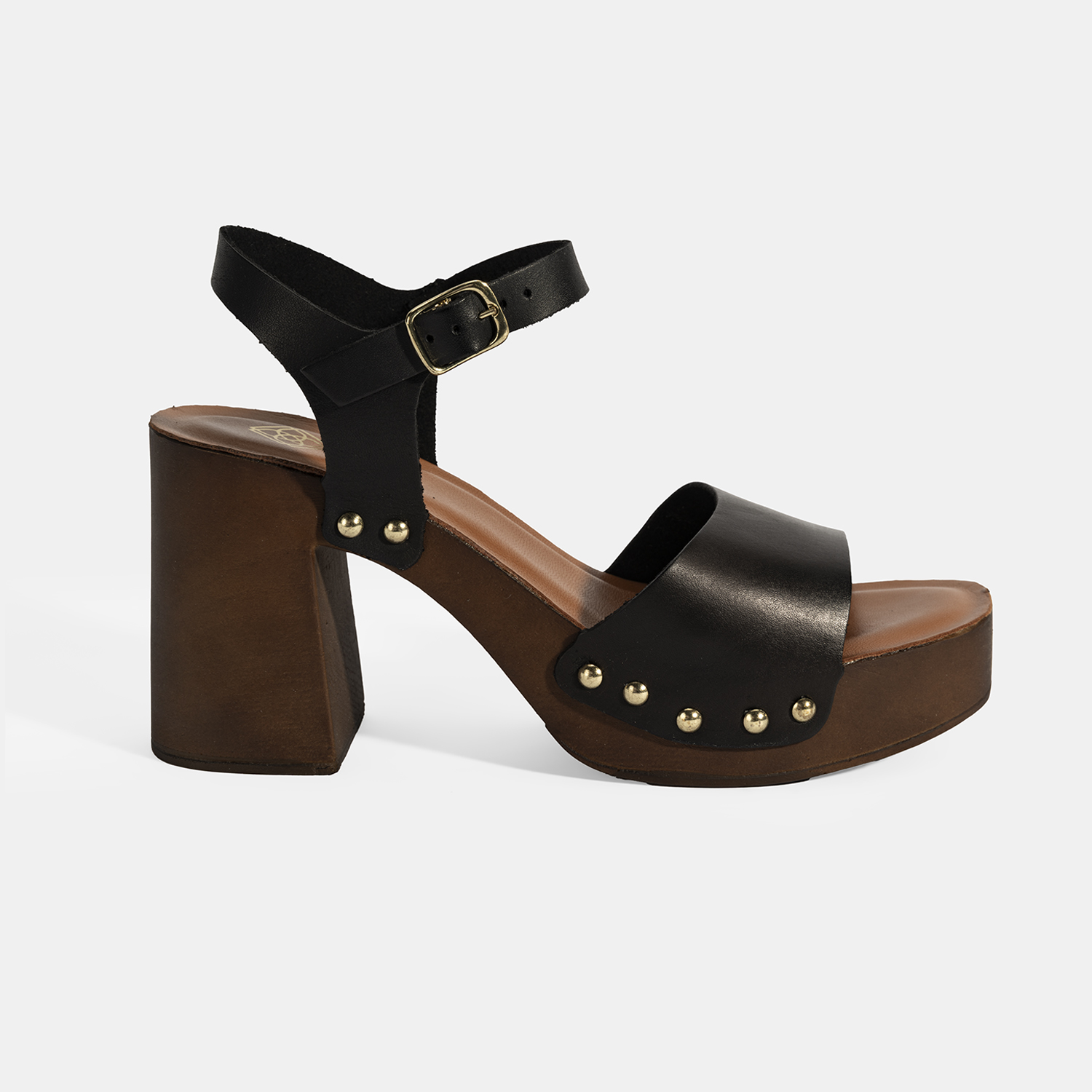 Kadın Siyah Ayarlanabilir Tokalı Deri Topuklu Sandalet