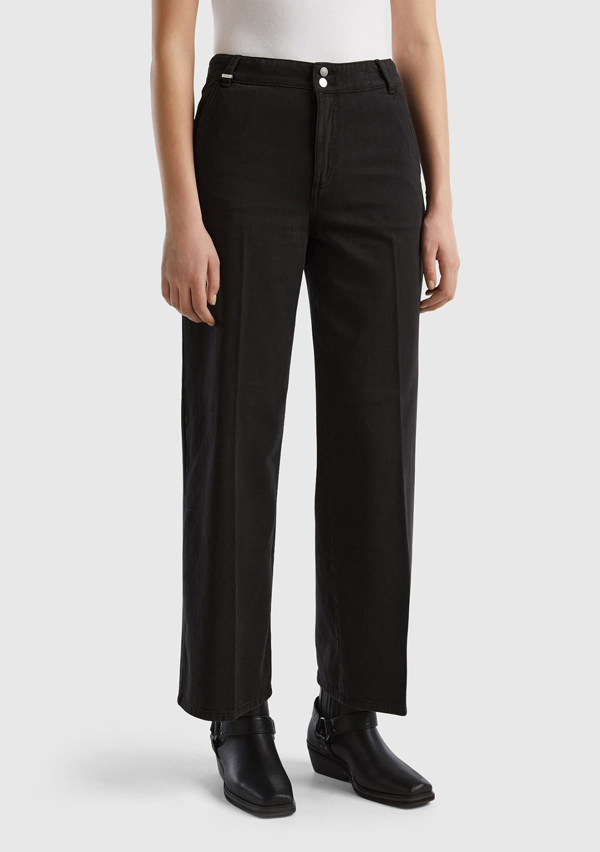Kadın Siyah Beli Lastikli Geniş Paça Denim Pantolon