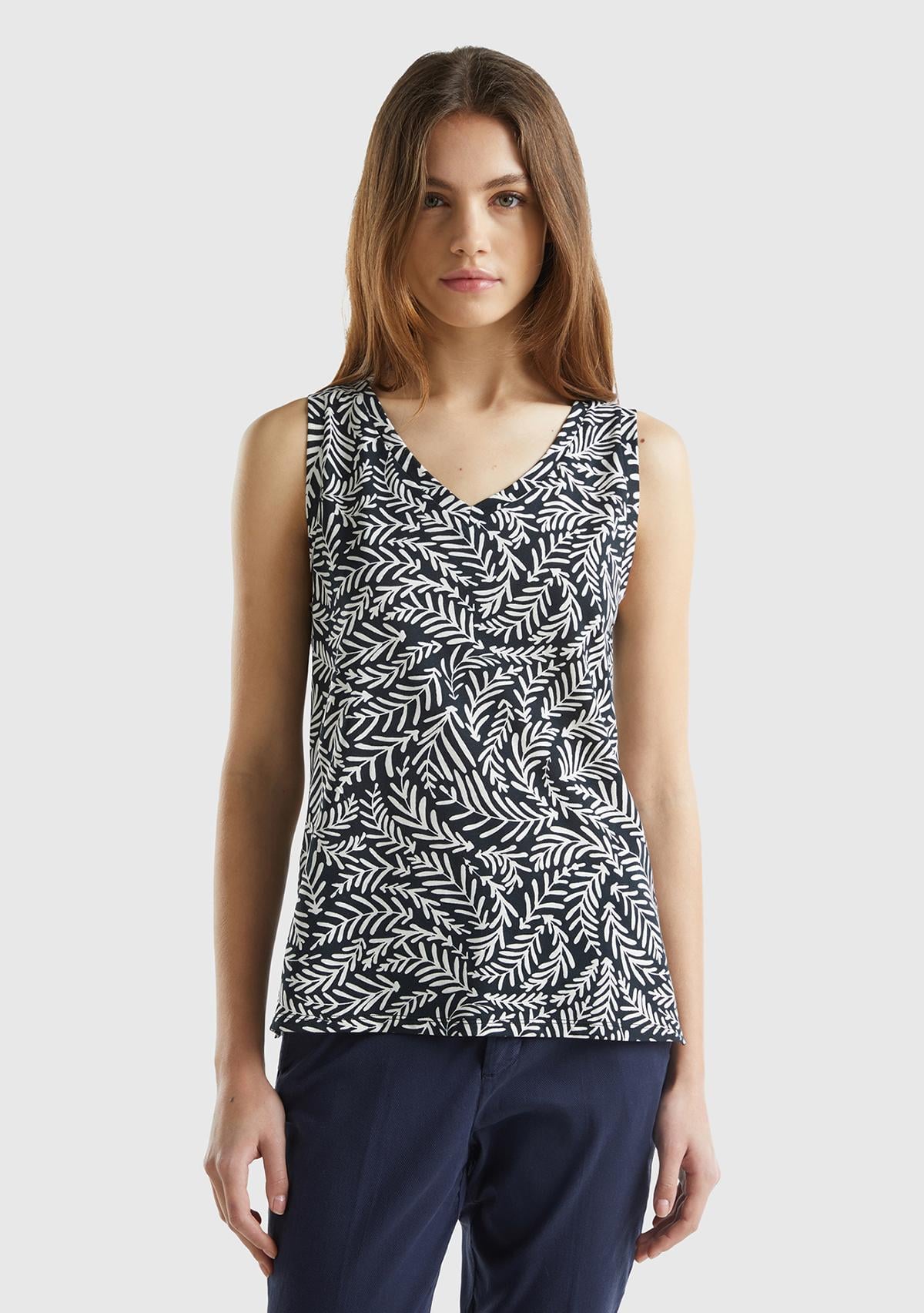 Kadın Siyah-Beyaz %100 Pamuk Tamamı Desenli Yırtmaçlı Geniş V Yaka Atlet