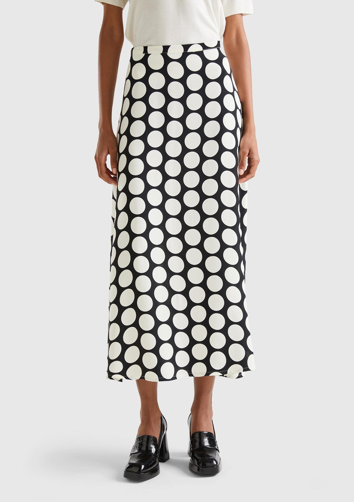 Kadın Siyah Beyaz %100 Viskoz Puantiyeli Yandan Fermuarlı Uzun Etek