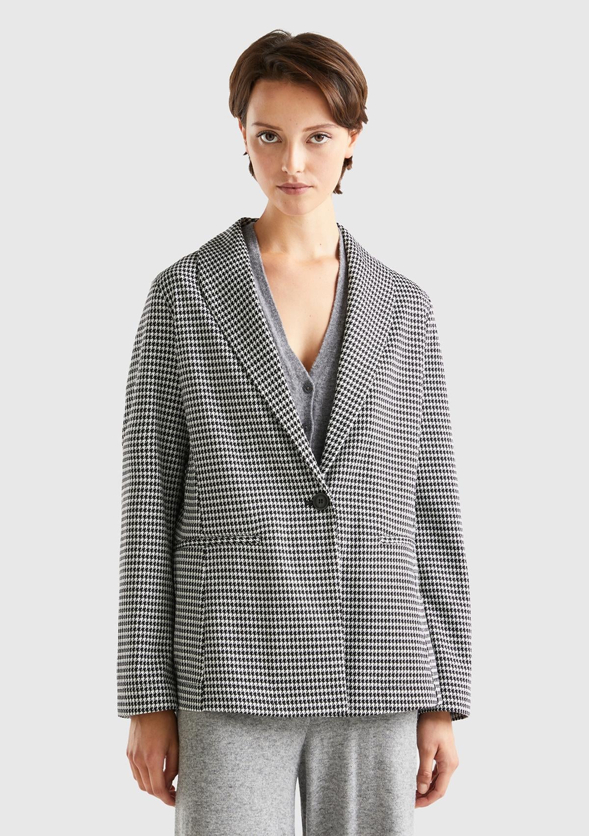 Kadın Siyah-Beyaz Kazayağı Desenli Ceket