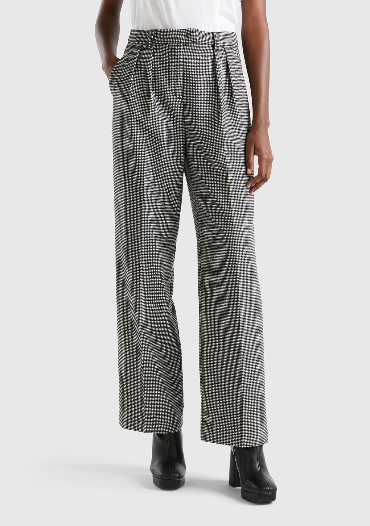 Kadın Siyah-Beyaz Kazayağı Desenli Geniş Paça Pantolon