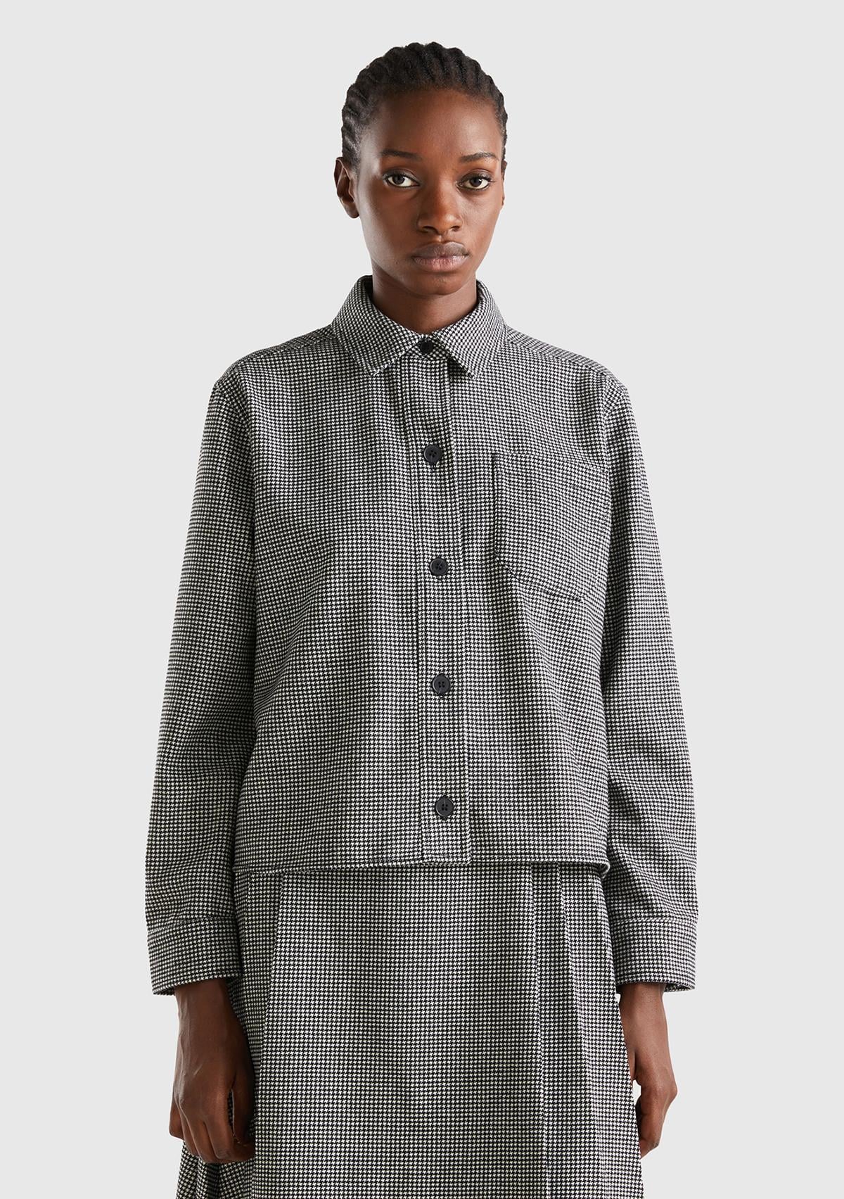 Kadın Siyah Beyaz Kazayağı Desenli Önü Capli Gömlek