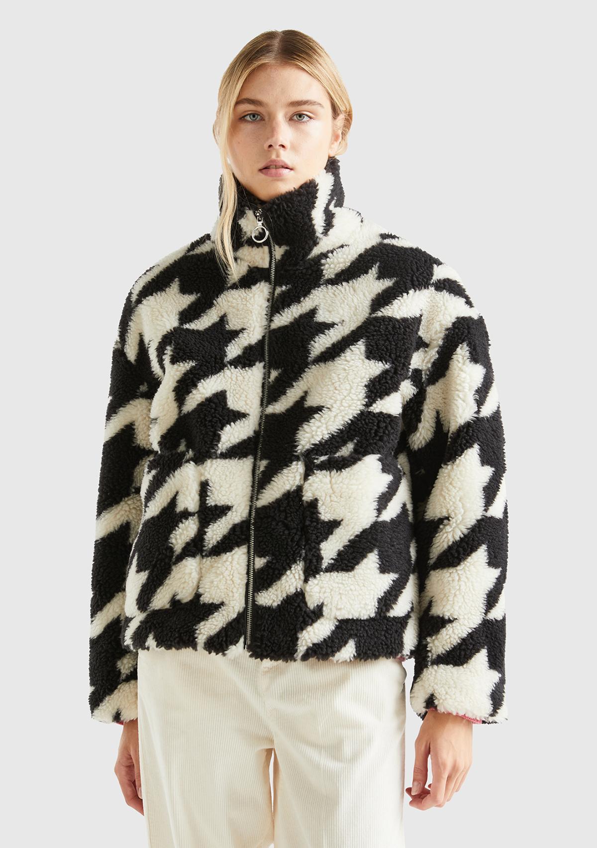 Kadın Siyah Beyaz Kazayağı Teddy Ceket