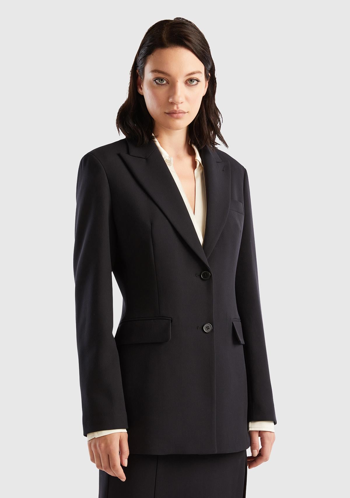 Kadın Siyah Çift Düğmeli Ceket
