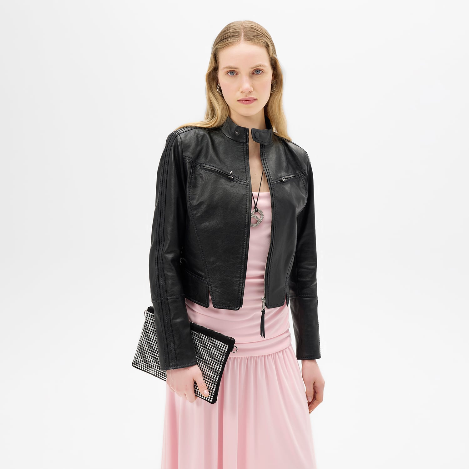 Kadın hakim yakalı biker deri ceket.
