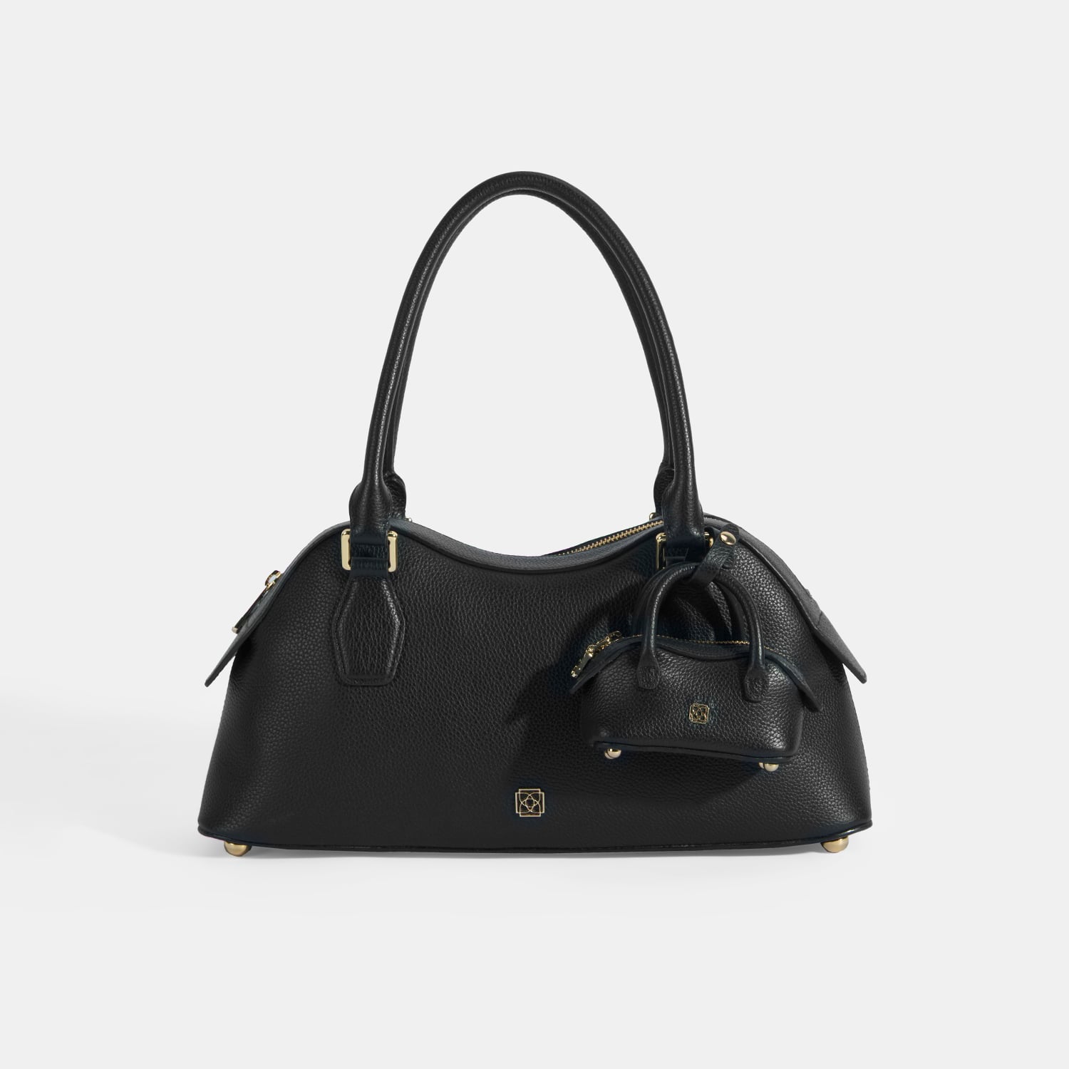 Kadın Siyah Deri Çanta Aksesuarlı Büyük Omuz Çantası