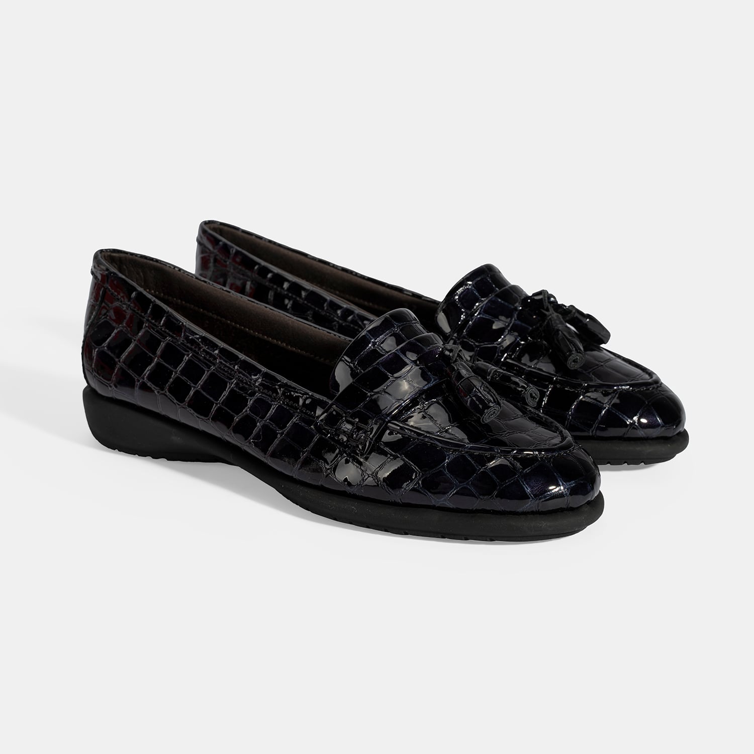 %100 kroko baskılı rugan deri, tekstil astarlı, tekstil iç tabanlı, püskül detaylı, kauçuk tabanlı comfort kadın loafer. Topuk yüksekliği: 3 cm. %100 Dana derisinden üretilmiştir.-%100 kroko baskılı rugan deri, tekstil astarlı, tekstil iç tabanlı, püskül detaylı, kauçuk tabanlı comfort kadın loafer. Topuk yüksekliği: 3 cm. %100 Dana derisinden üretilmiştir.