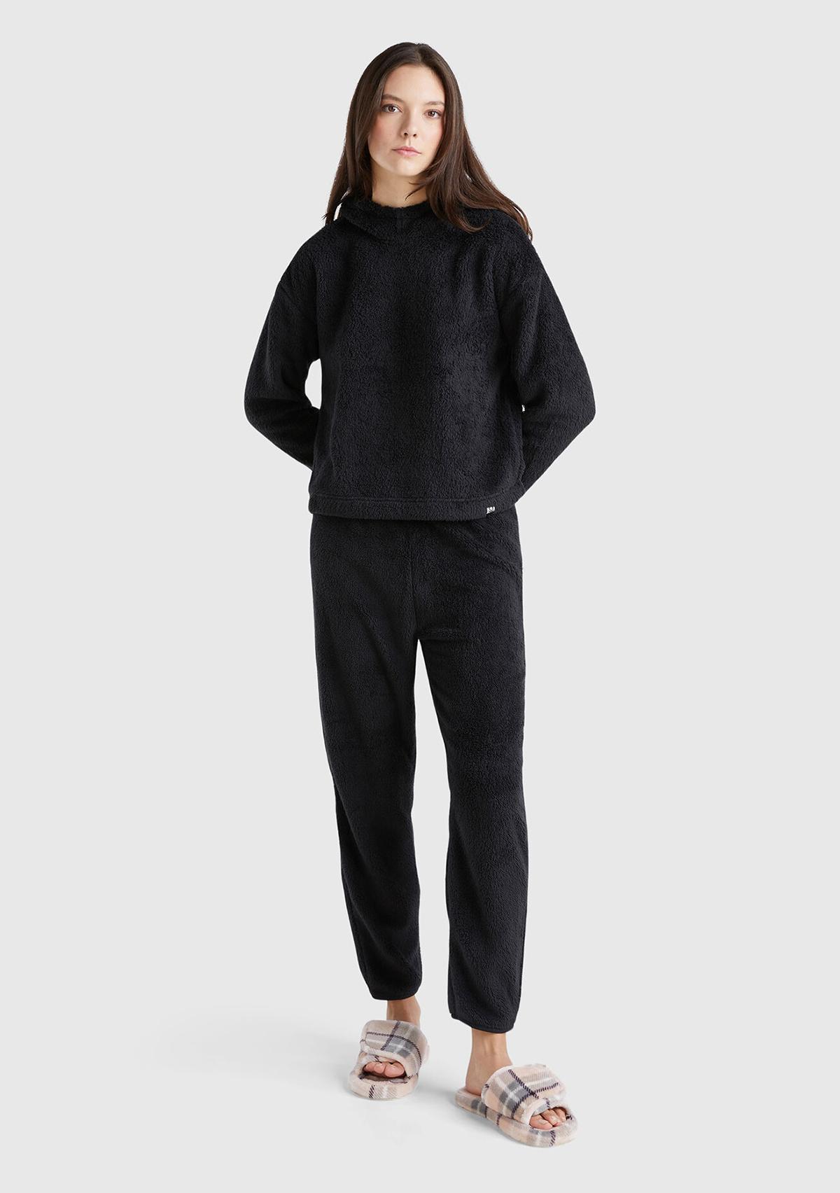 Kadın Siyah Etek Ucu Logo Etiketli Kapüşonlu Sweatshirt