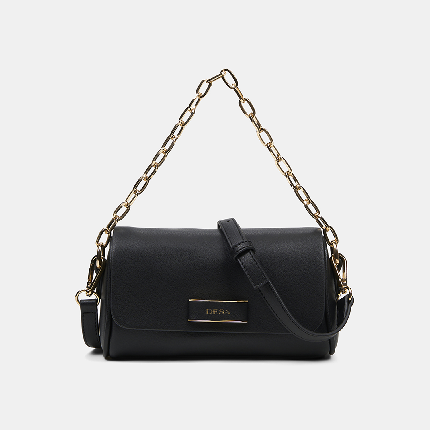 Kadın Siyah Gold Zincir Detaylı El ve Omuz Çantası