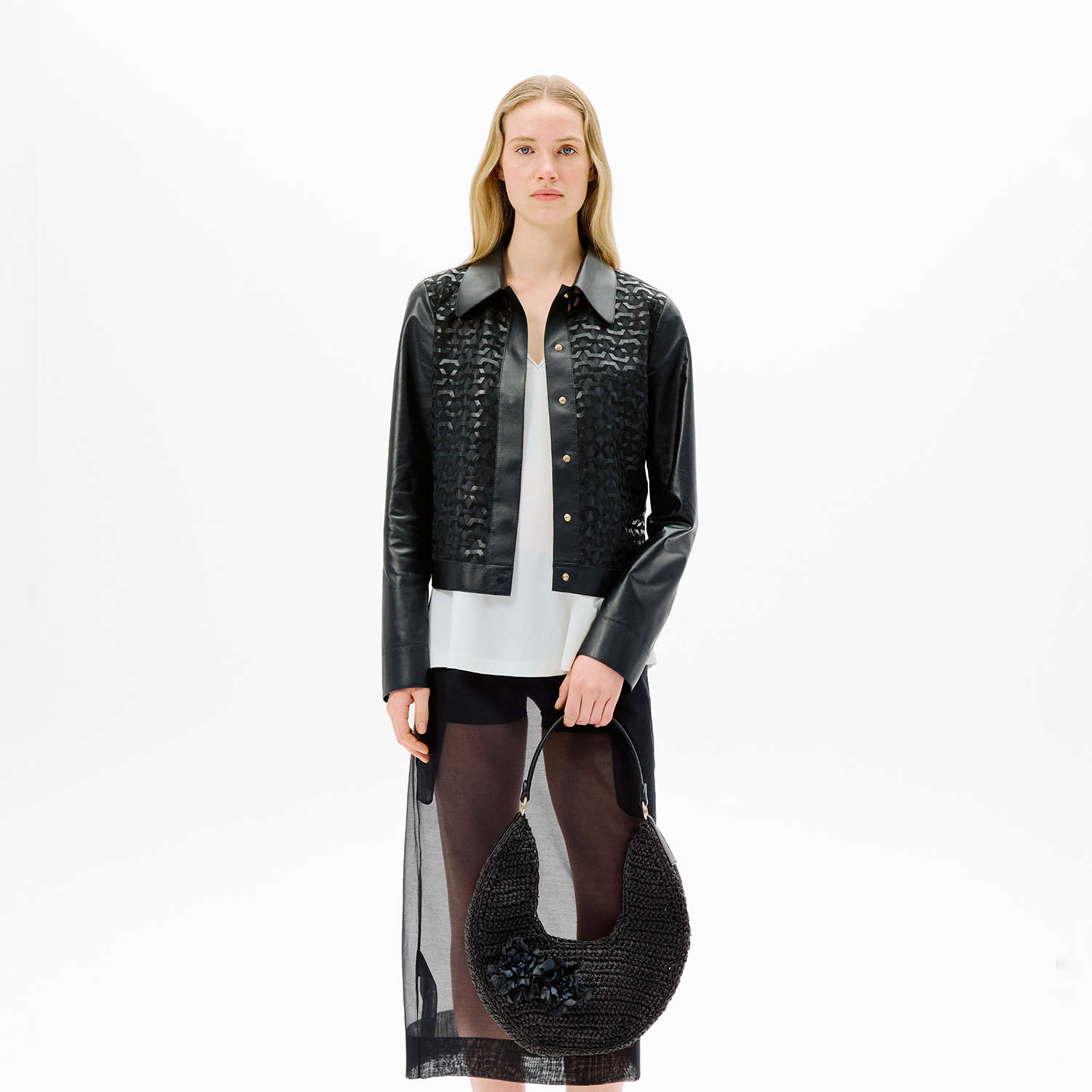 Kadın gömlek yakalı deri ceket. Önden gizli metal çıtçıt kapamalıdır. Ön yüzünde özel olarak tül üzerine lamine tekniği ile deri ve süet harmanlaştırarak geometrik şekiller ile hareketlilik verilmiştir. %100 Koyun ve keçi derisinden olup astarsız çalışılmıştır. Bu ürün, et endüstrisinin yan ürünü olarak elde edilen ve sürdürülebilir yöntemler ile Leather Working Group Altın sertifikalı Desa tesislerinde tabaklanan deriler kullanılarak üretilmiştir.-Kadın gömlek yakalı deri ceket. Önden gizli metal çıtçıt kapamalıdır. Ön yüzünde özel olarak tül üzerine lamine tekniği ile deri ve süet harmanlaştırarak geometrik şekiller ile hareketlilik verilmiştir. %100 Koyun ve keçi derisinden olup astarsız çalışılmıştır. Bu ürün, et endüstrisinin yan ürünü olarak elde edilen ve sürdürülebilir yöntemler ile Leather Working Group Altın sertifikalı Desa tesislerinde tabaklanan deriler kullanılarak üretilmiştir.