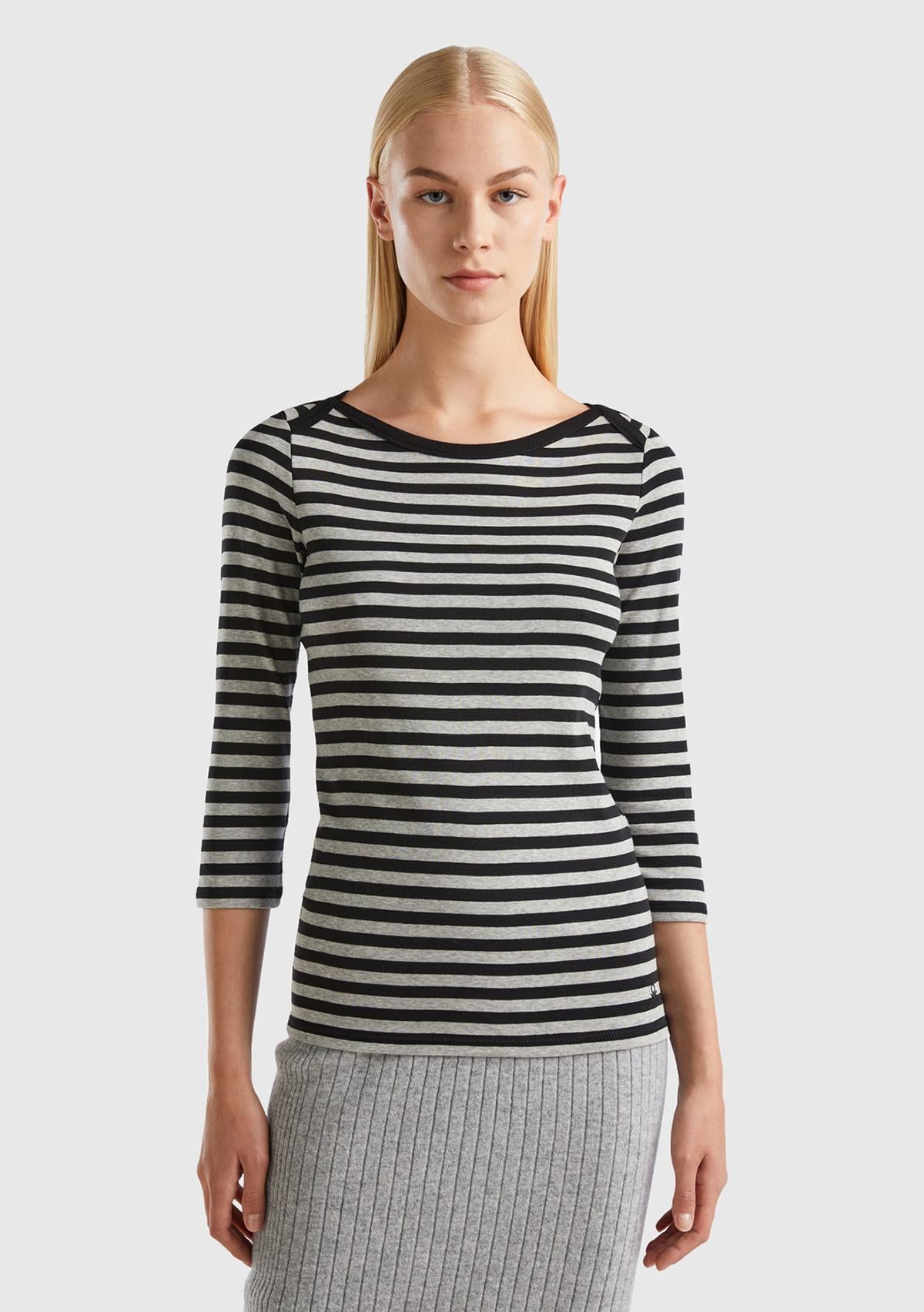 Kadın Siyah-Gri Truvakar Kol Çizgili Tshirt