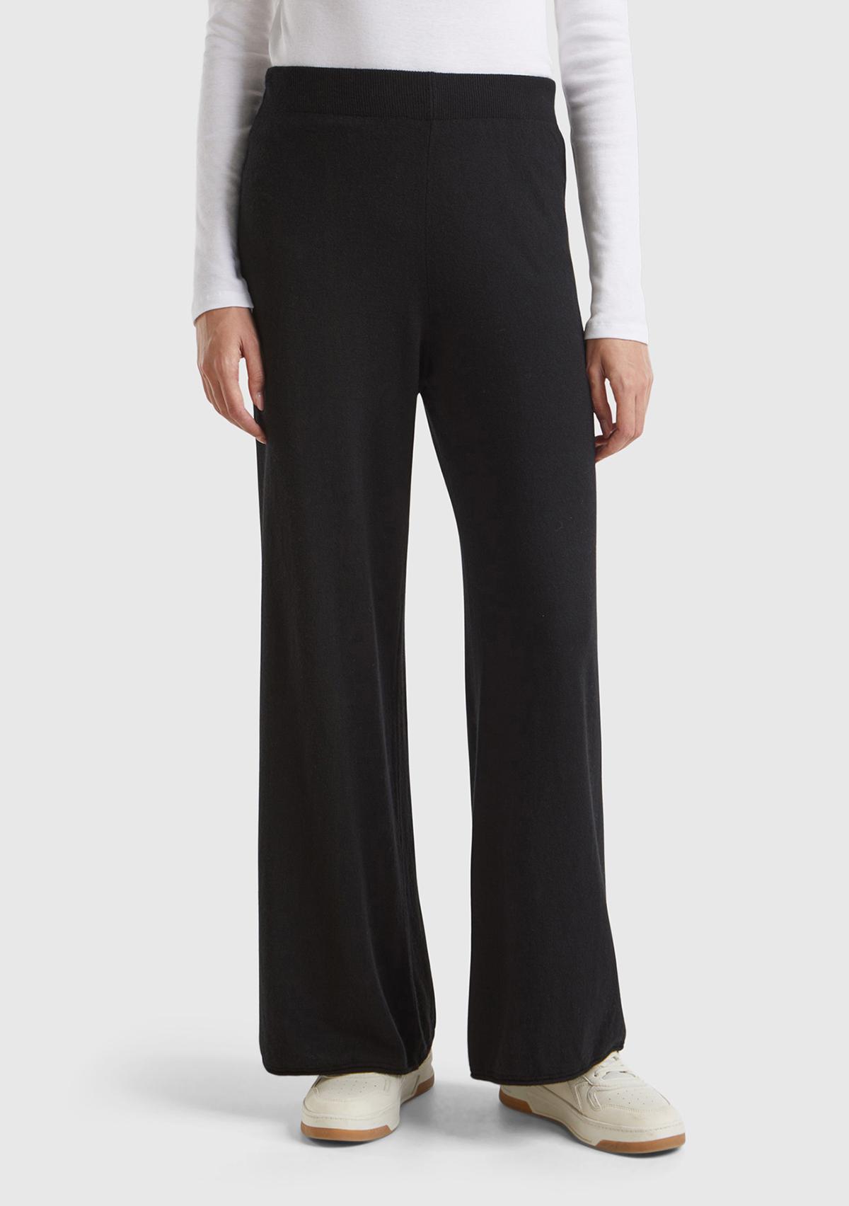 Kadın Siyah Kaşmir Karışımlı Triko Eşofman Altı. Koyun-Keçi Yünü İçerir