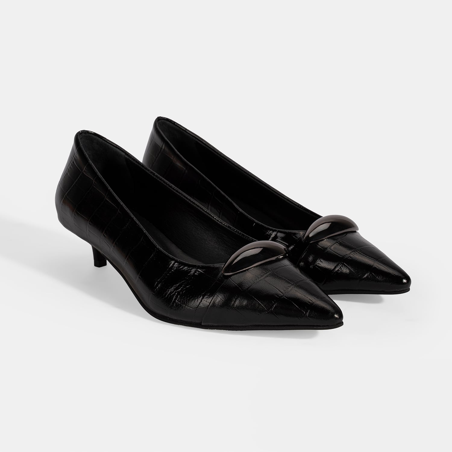 %100 kroko baskılı deri, deri iç tabanlı, deri astarlı, metal aksesuar detaylı, neolit tabanlı, kitten topuklu kadın klasik ayakkabı. Topuk yüksekliği 4,5 cm. Bu ürün, et endüstrisinin yan ürünü olarak elde edilen ve sürdürülebilir yöntemler ile Leather Working Group Altın sertifikalı Desa tesislerinde tabaklanan deriler kullanılarak üretilmiştir. %100 Koyun derisinden üretilmiştir.-%100 kroko baskılı deri, deri iç tabanlı, deri astarlı, metal aksesuar detaylı, neolit tabanlı, kitten topuklu kadın klasik ayakkabı. Topuk yüksekliği 4,5 cm. Bu ürün, et endüstrisinin yan ürünü olarak elde edilen ve sürdürülebilir yöntemler ile Leather Working Group Altın sertifikalı Desa tesislerinde tabaklanan deriler kullanılarak üretilmiştir. %100 Koyun derisinden üretilmiştir.